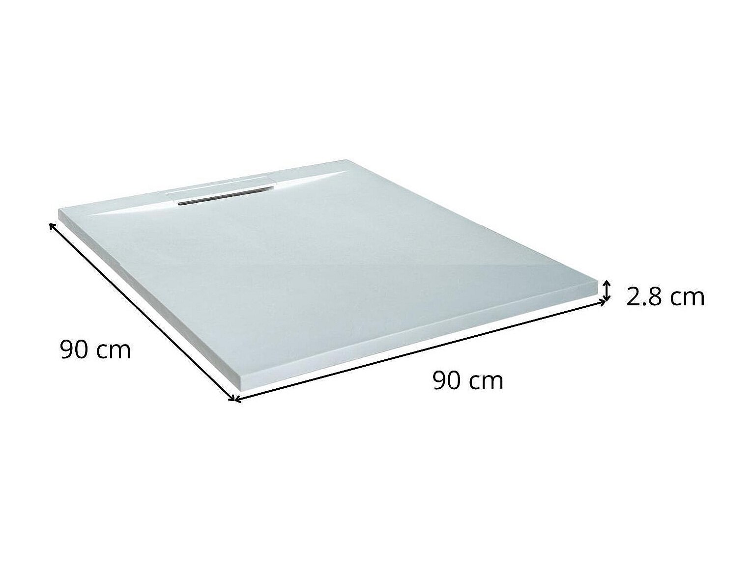 Receveur de douche aspect pierre extra-plat blanc - Bonde incluse