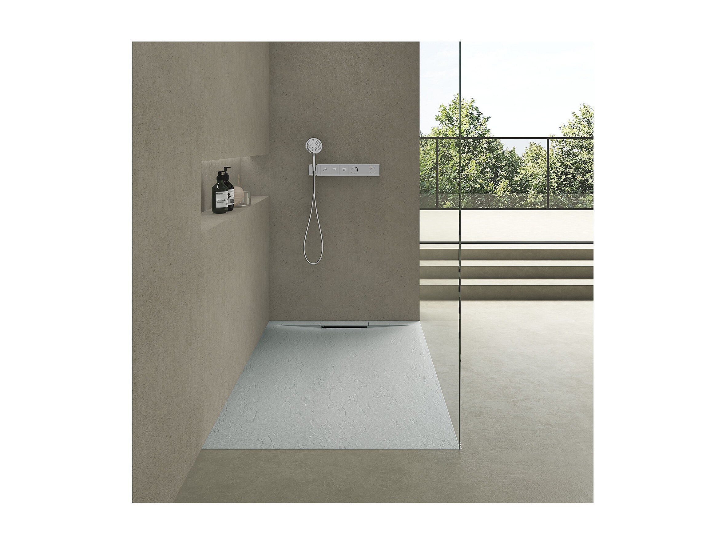 Receveur de douche aspect pierre extra-plat gris clair - Bonde incluse