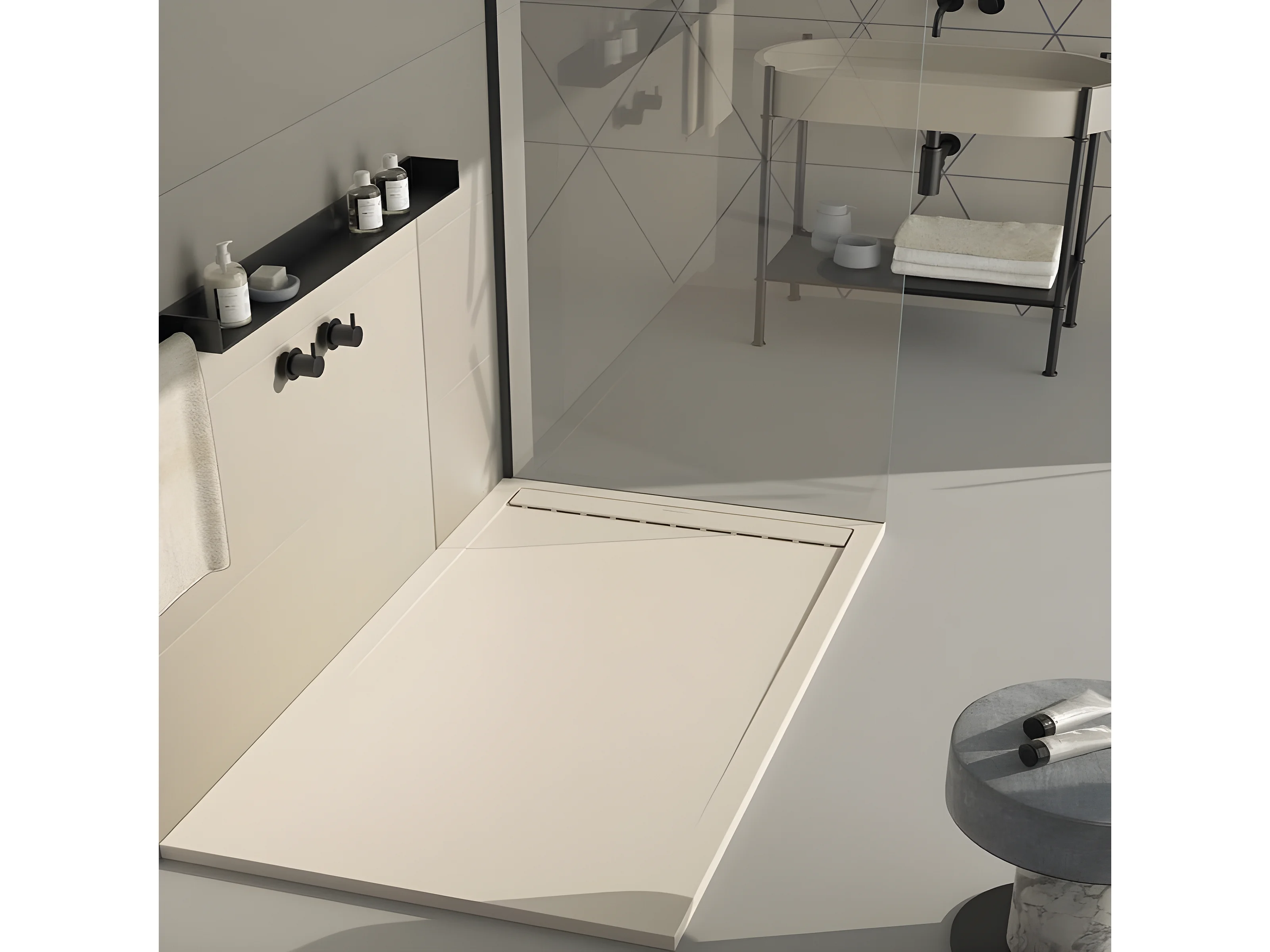 Receveur de douche Crème, finition Lisse Stone SMART, grille de couleur - 140 x 80 cm