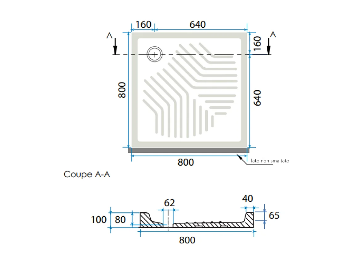Receveur De Douche En Céramique Carré 80X80 Cm Antidérapant | Topazio