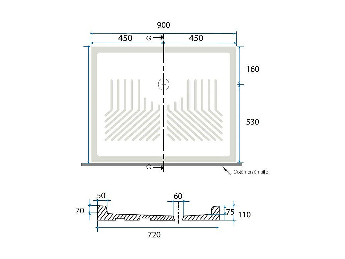 Receveur De Douche En Céramique Rectangulaire 70X90 Cm | Topazio