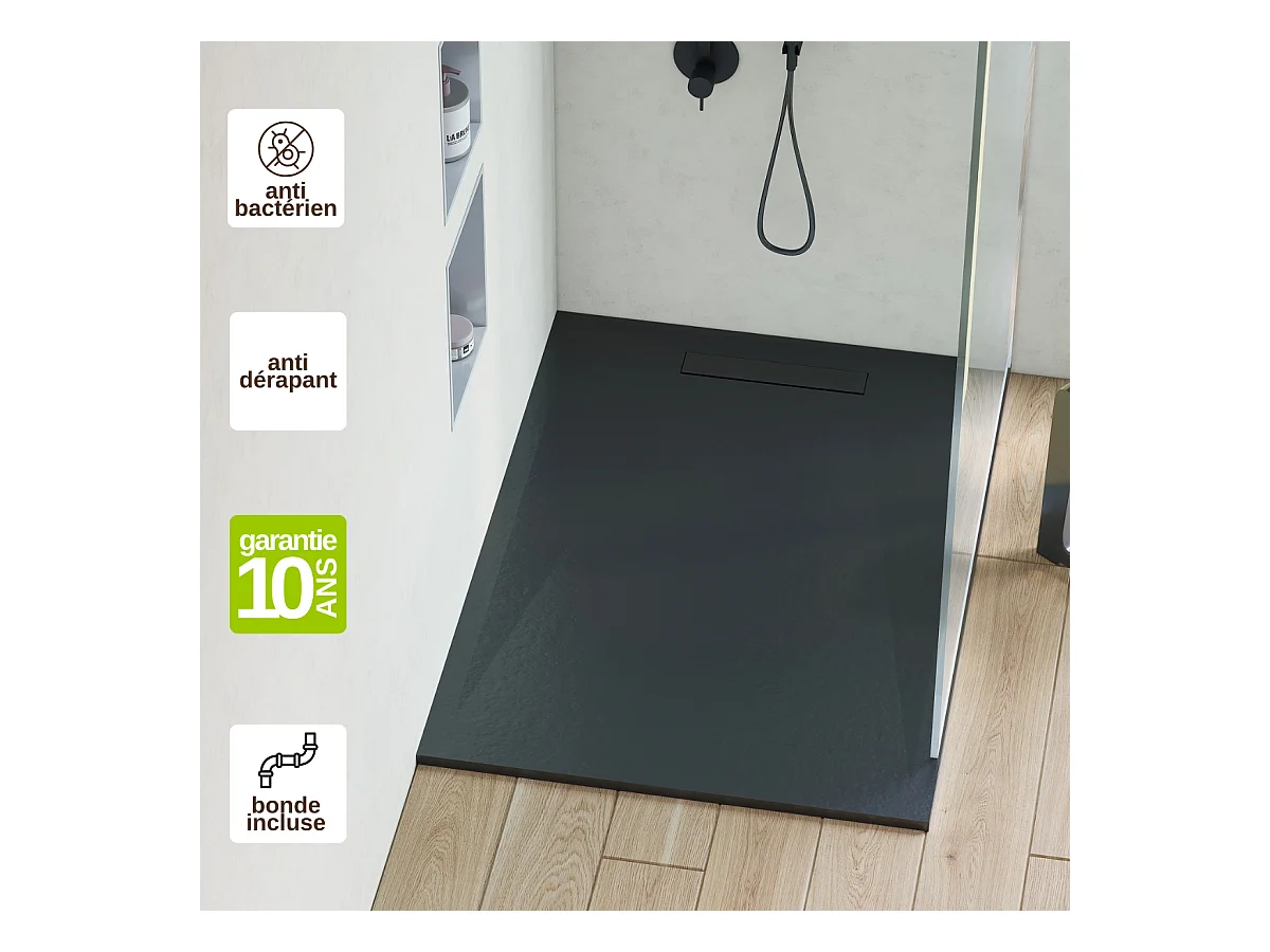 Receveur de Douche Extraplat 70X180x2,8cm Graphite en Résine Minérale – Antidérapant,Texture Ardoise - ADICIONAL RÉSIGRÈS