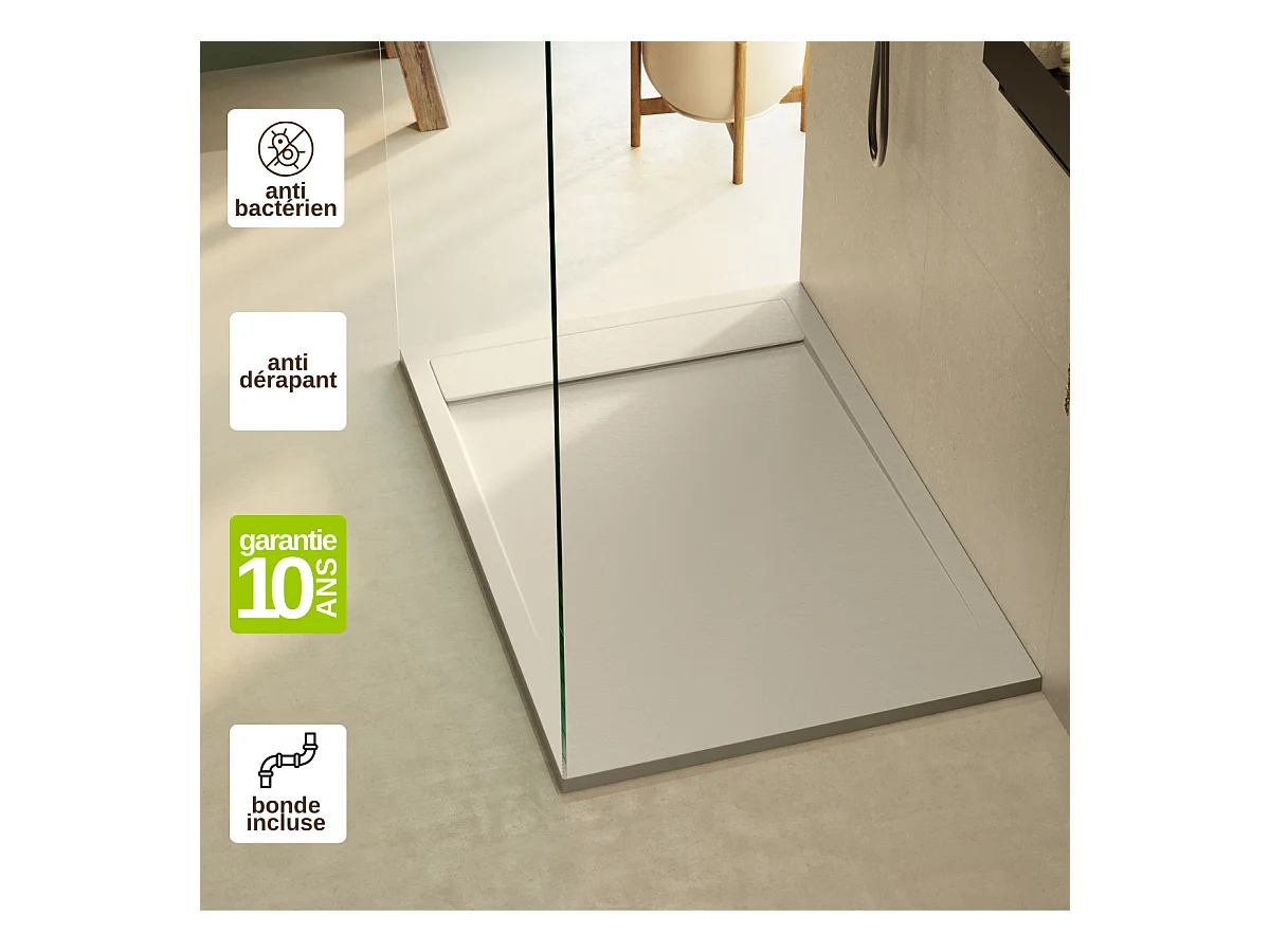 Receveur de Douche Extraplat 180x90x3cm Beige en Résine Minérale - Antidérapant, Texture Ardoise - MAGNUS LAVABERG