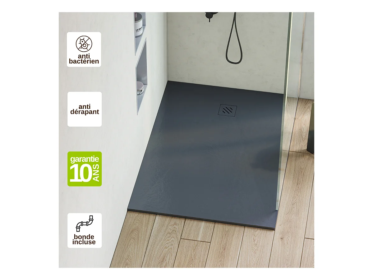 Receveur de Douche Extraplat 100x200x2,6cm Blanc en Résine Minérale – Antidérapant, Texture Ardoise - MINIMO RÉSIGRÈS