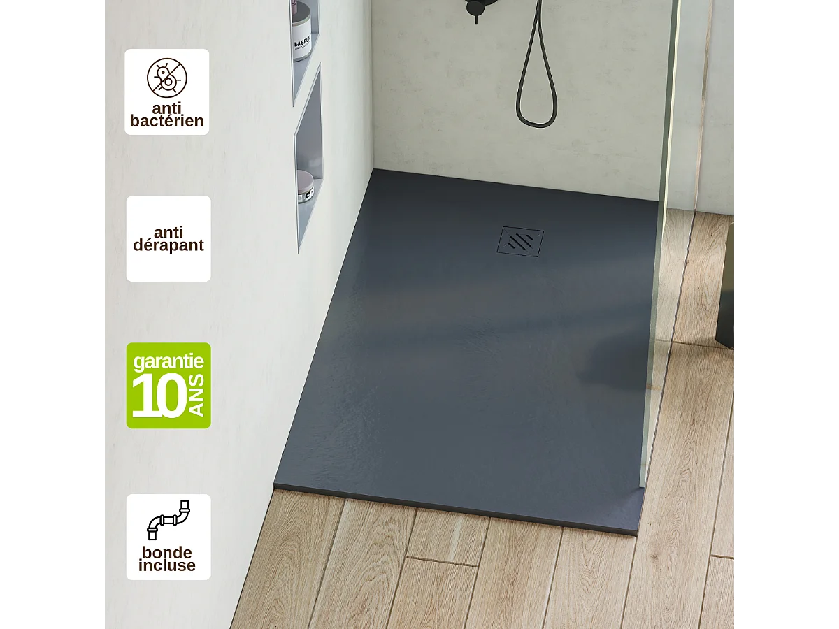 Receveur de Douche Extraplat 75x160cm Graphite - Résine Minérale - Antidérapant - Effet Pierre Naturelle - RÉSIGRÈS.