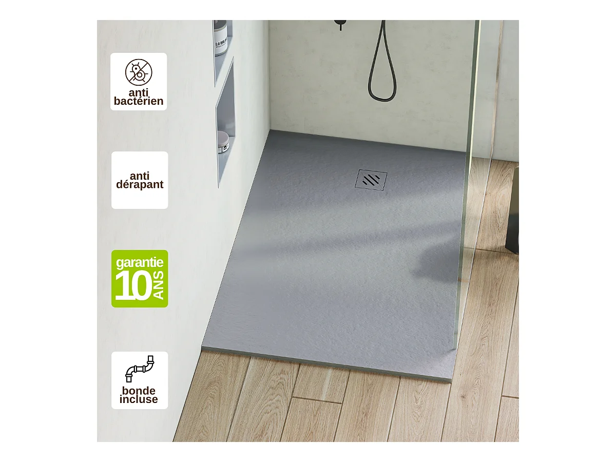 Receveur de Douche Extraplat 100x130x2,6cm Gris en Résine Minérale – Antidérapant, Texture Ardoise - MINIMO RÉSIGRÈS