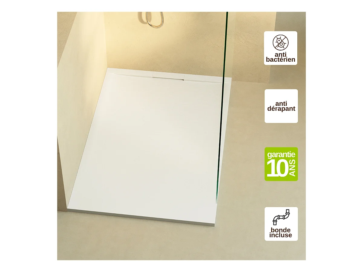 Receveur de Douche Extraplat 160x70x3cm Blanc en Résine Minérale - Antidérapant, Texture Ardoise - RAGNAR LAVABERG
