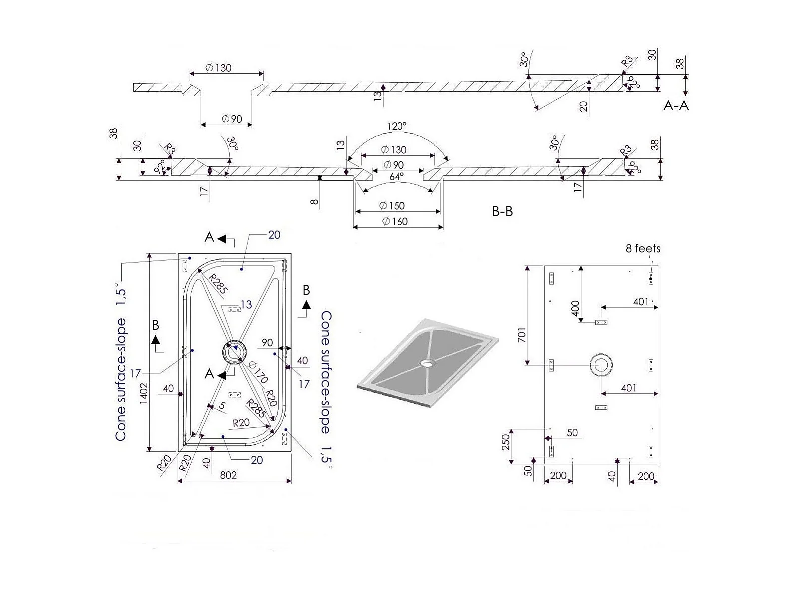 Receveur De Douche Fin En Résine 80X140 Extra Plat | Klio