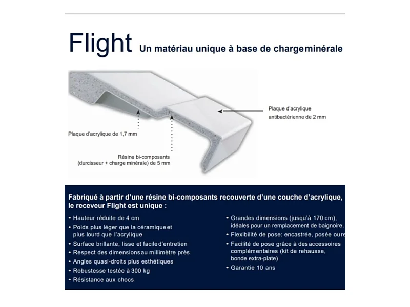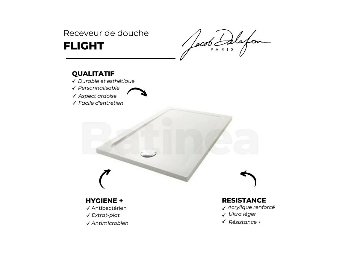 Receveur de douche JACOB DELAFON Flight rectangle extra plat Douche italienne 140 x 100 cm