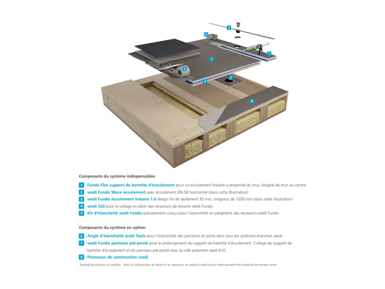 Receveur de douche pré-penté 164 x 120 x 3,5 cm WEDI Fundo Flex bois