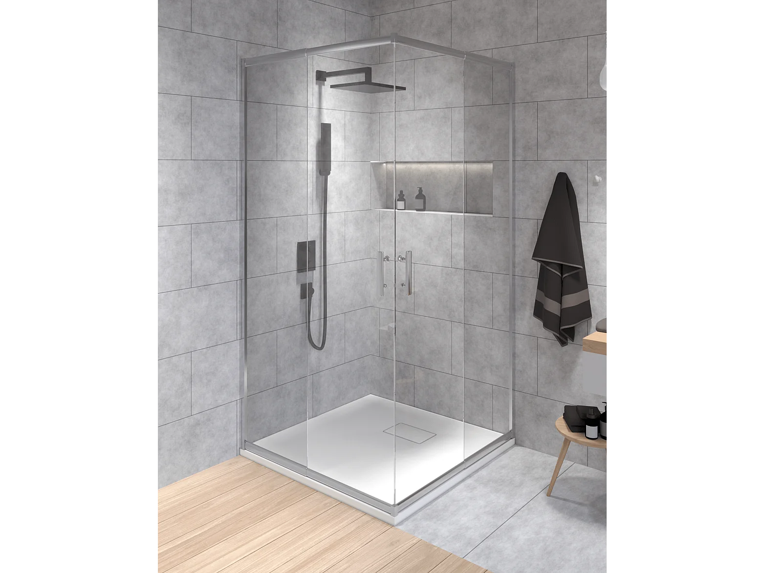 Receveur de douche VIDAR 90x90 cm Blanc + Cabine de douche Carrée HELA Chrome 90x90 190 cm Nano-Verre Transparent Trempé