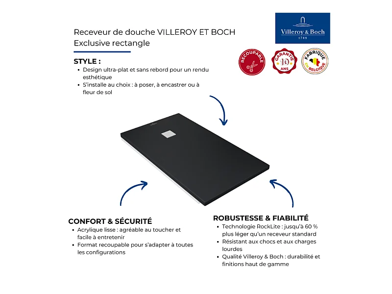 Receveur découpable 140 X 100 VILLEROY ET BOCH Exclusive rectangle anthracite