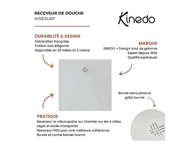 Receveur KINEDO Kinesurf Nova 100X80 blanc mat