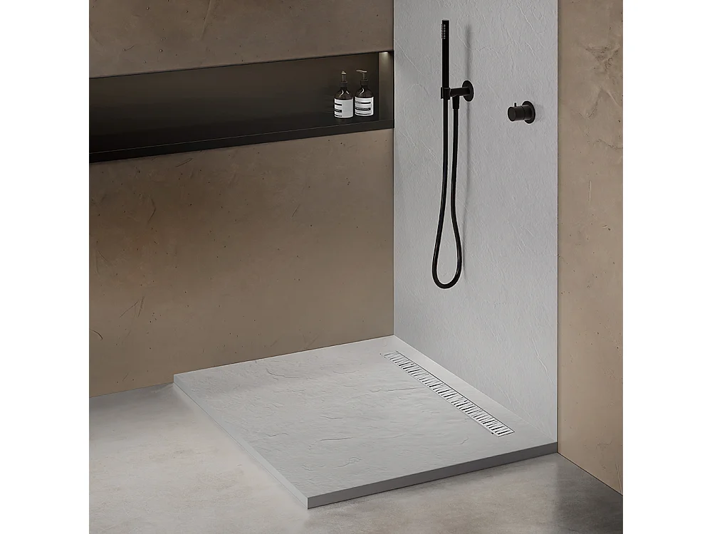 Receveur résine 120x120 cm blanc imitation ardoise - grille caniveau excentrée