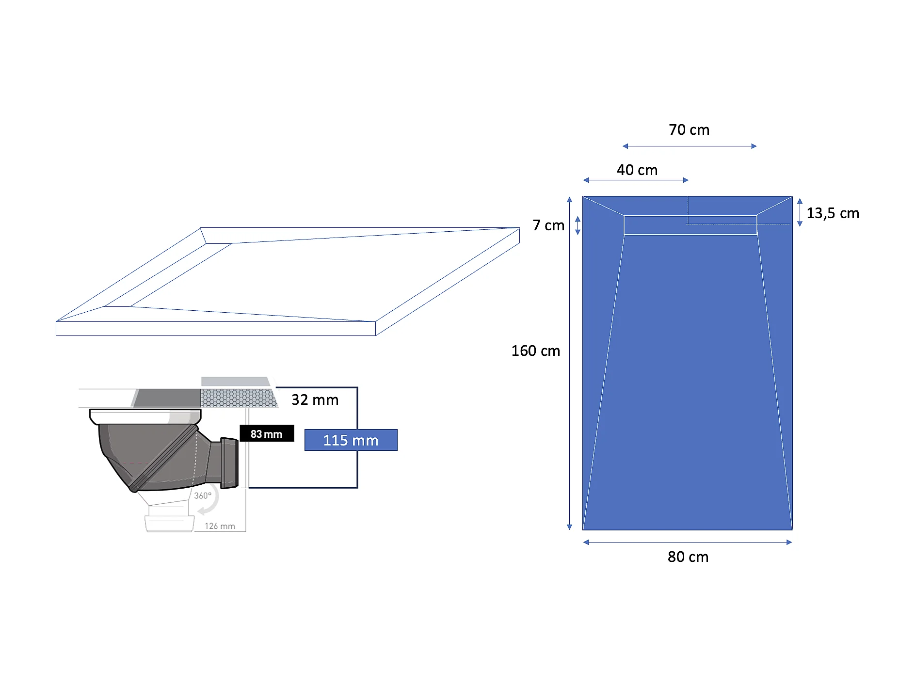 Receveur résine 160x90 cm gris ardoise imitation ardoise - grille caniveau excentrée