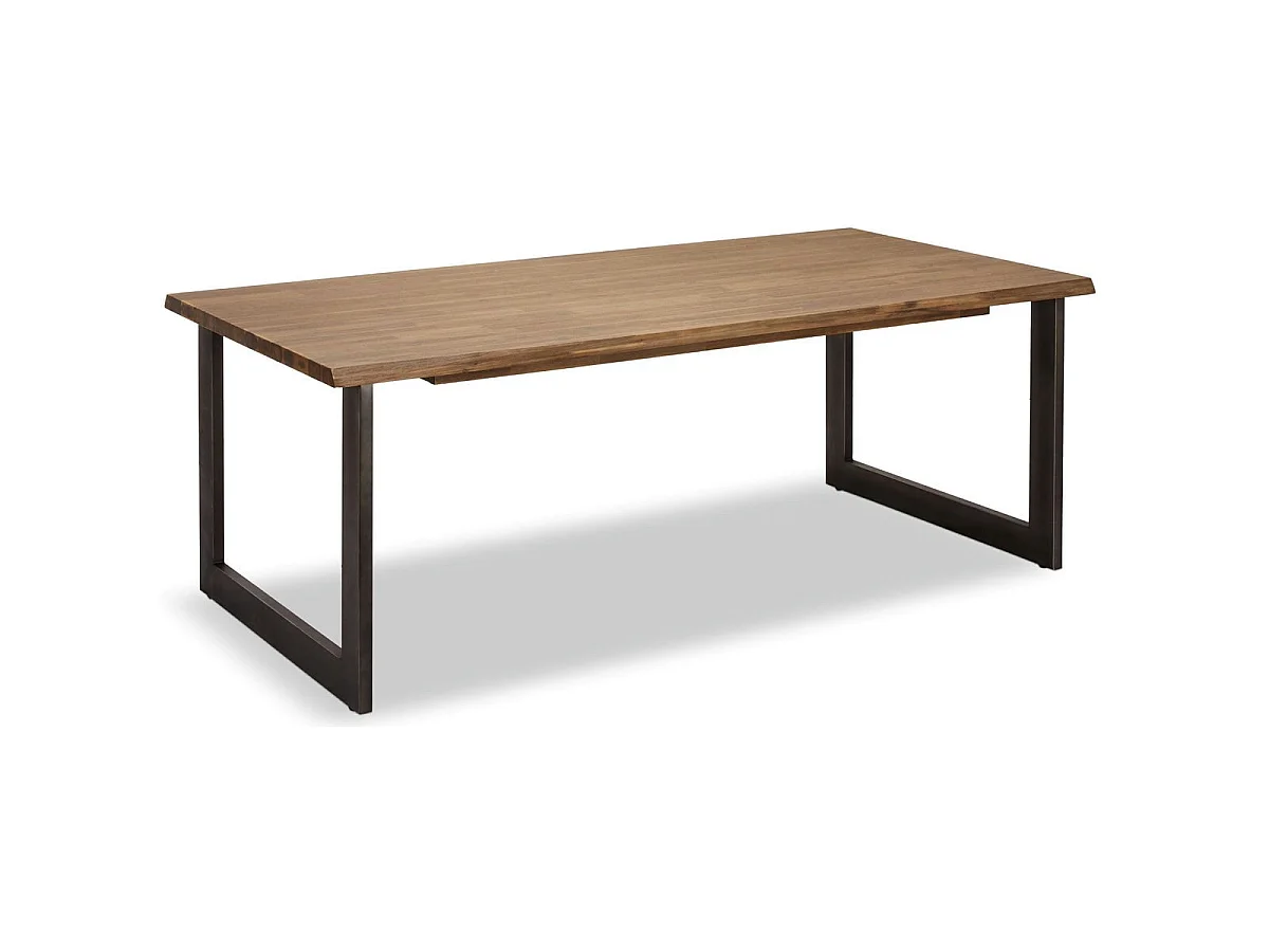 Table à manger extensible Mallorca - Rectangulaire - 6 à 8 couverts - Acacia massif et métal - Marron