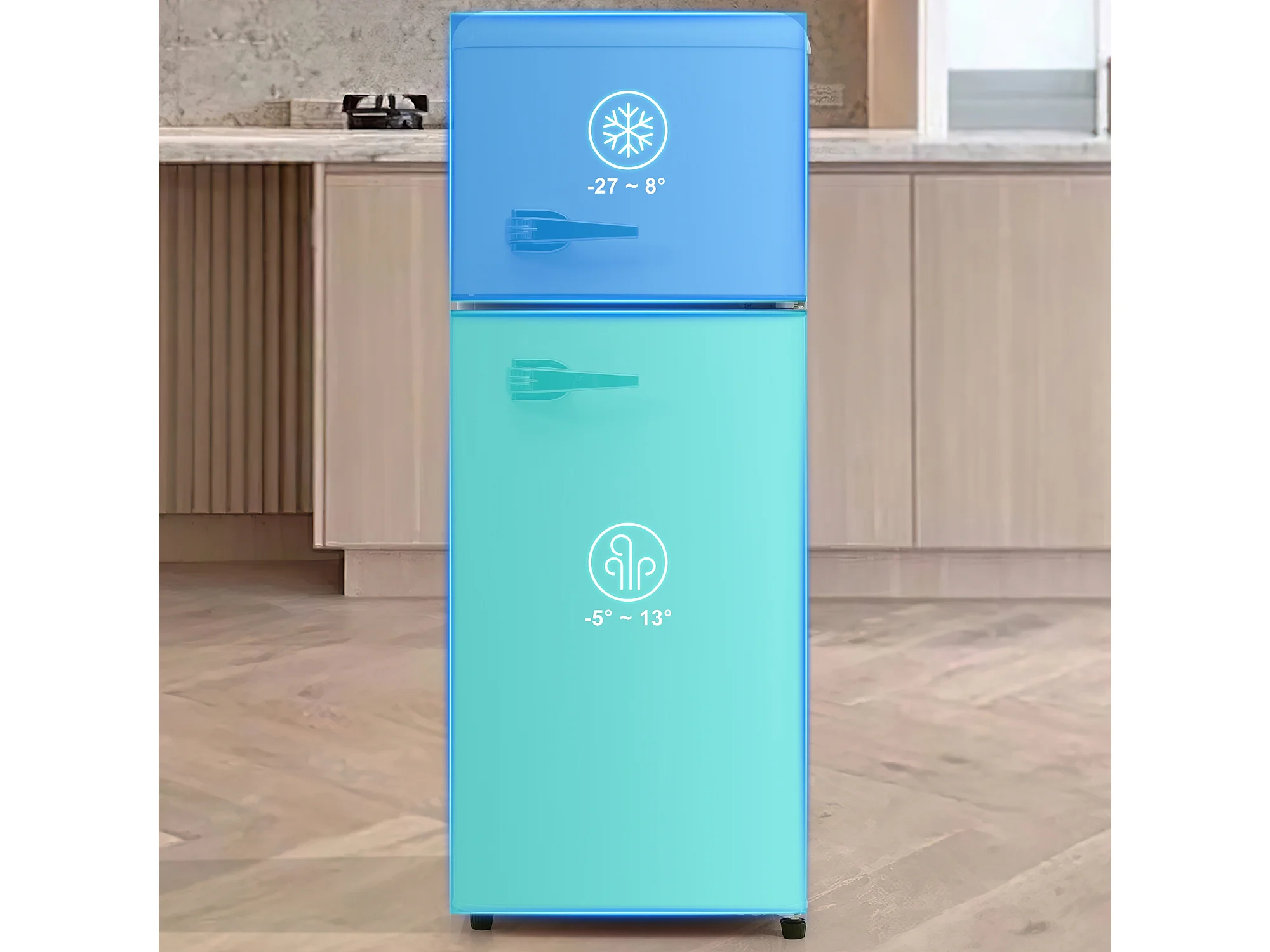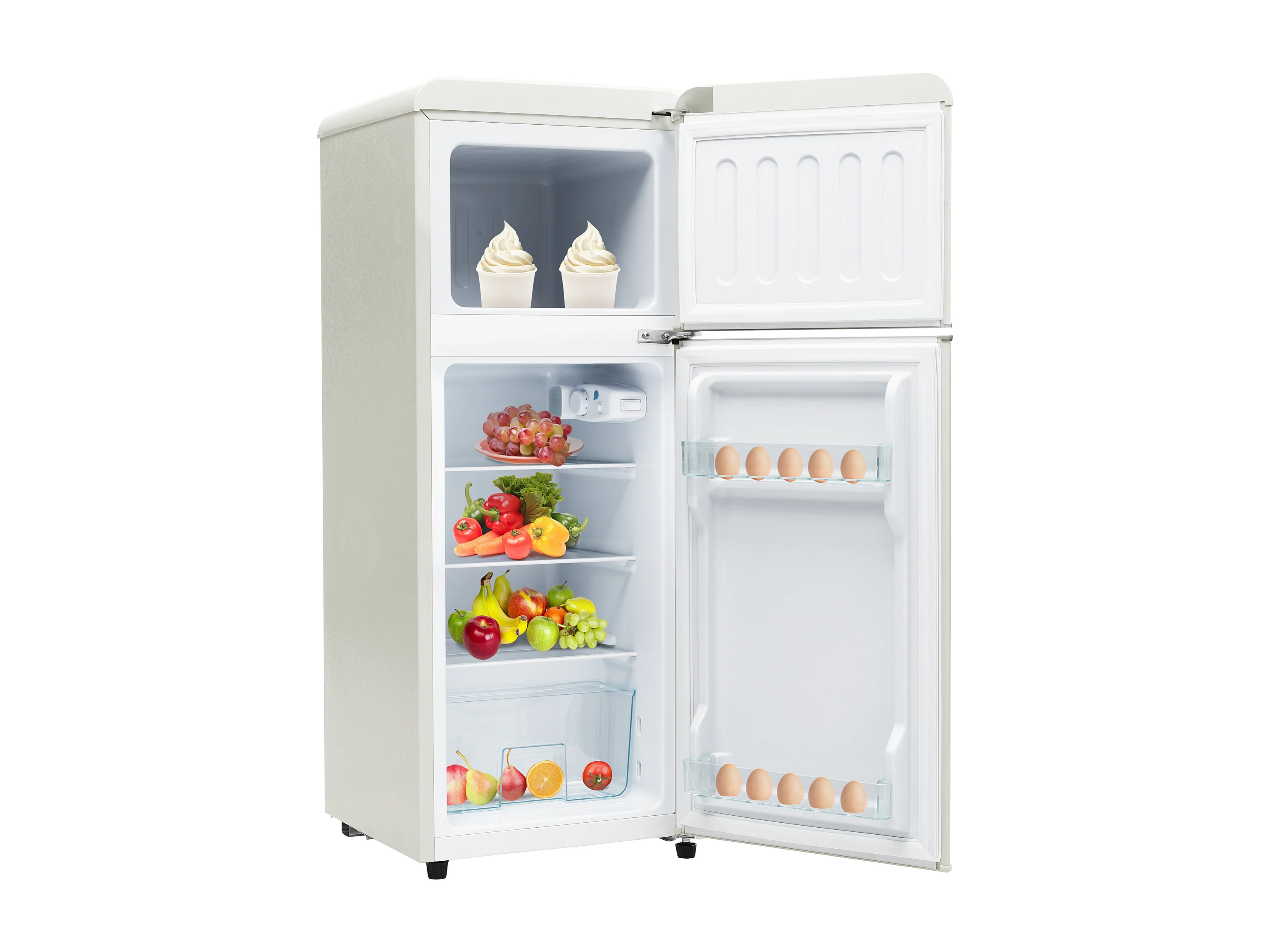 Réfrigérateur rétro de 92 L avec 2 portes et LED - -27 °C à 13 °C - Blanc antique