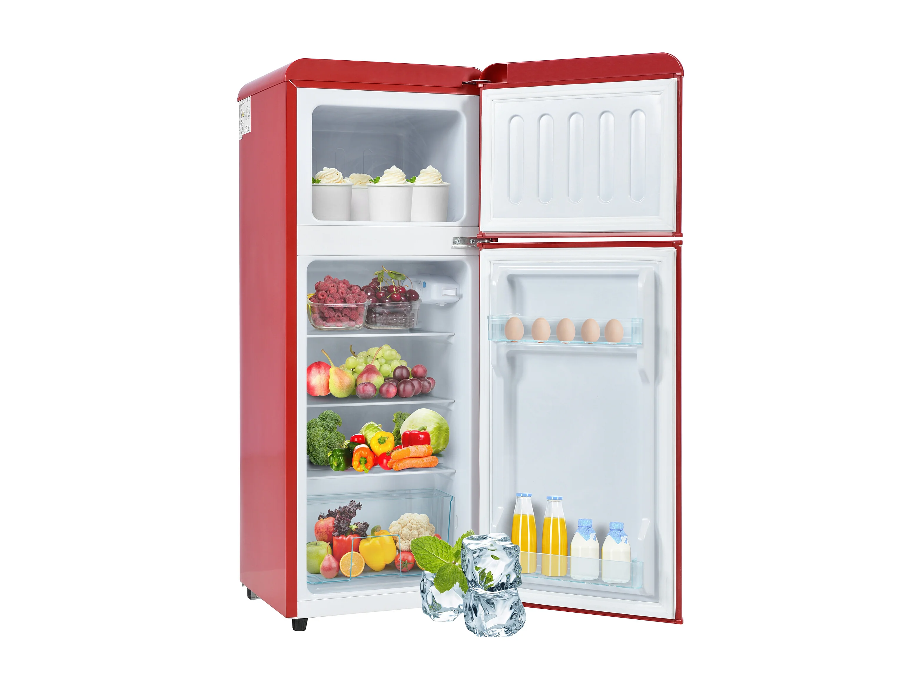 Réfrigérateur rétro de 92 L avec 2 portes et LED - -27 °C à 13 °C - Rouge