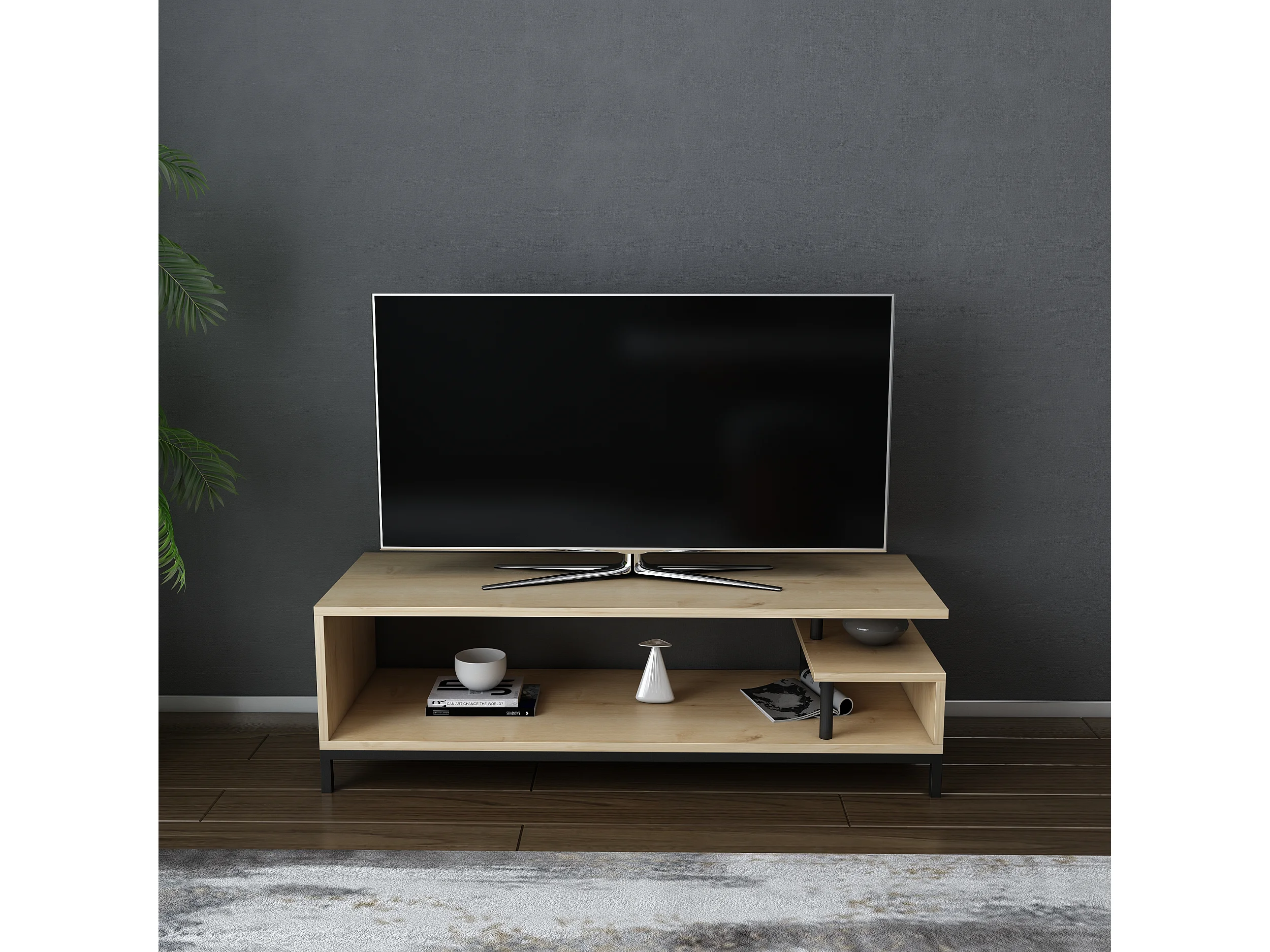 Reilly Meuble TV 120 cm Pieds en métal et étagères ouvertes (Chêne et Noir)