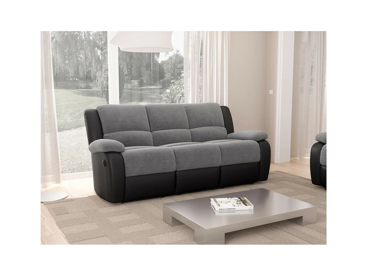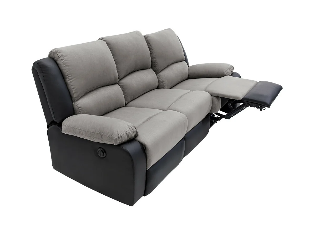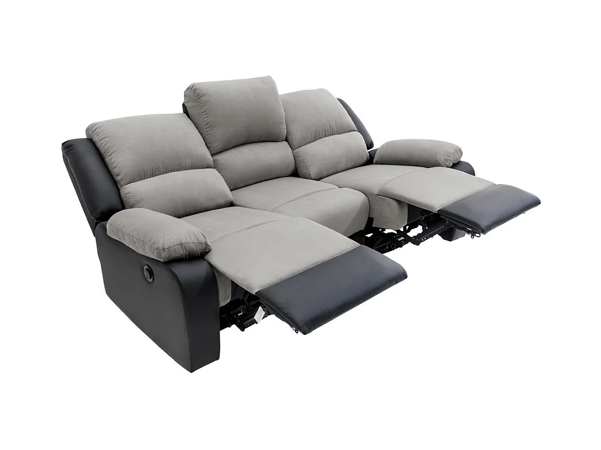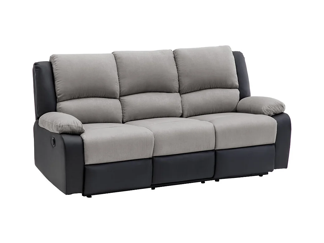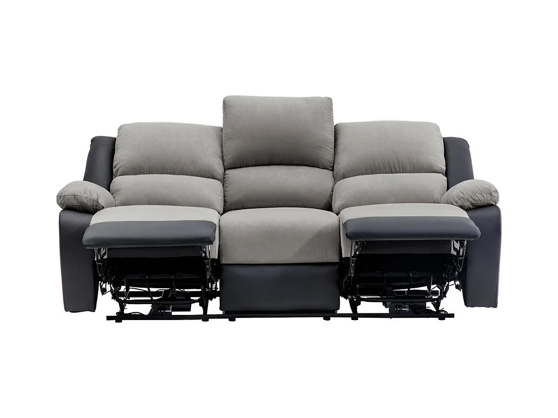 Canapé de Relaxation électrique 3 places Microfibre et Simili Léo - Noir et gris - L193 x 93 x 96cm - Loungitude