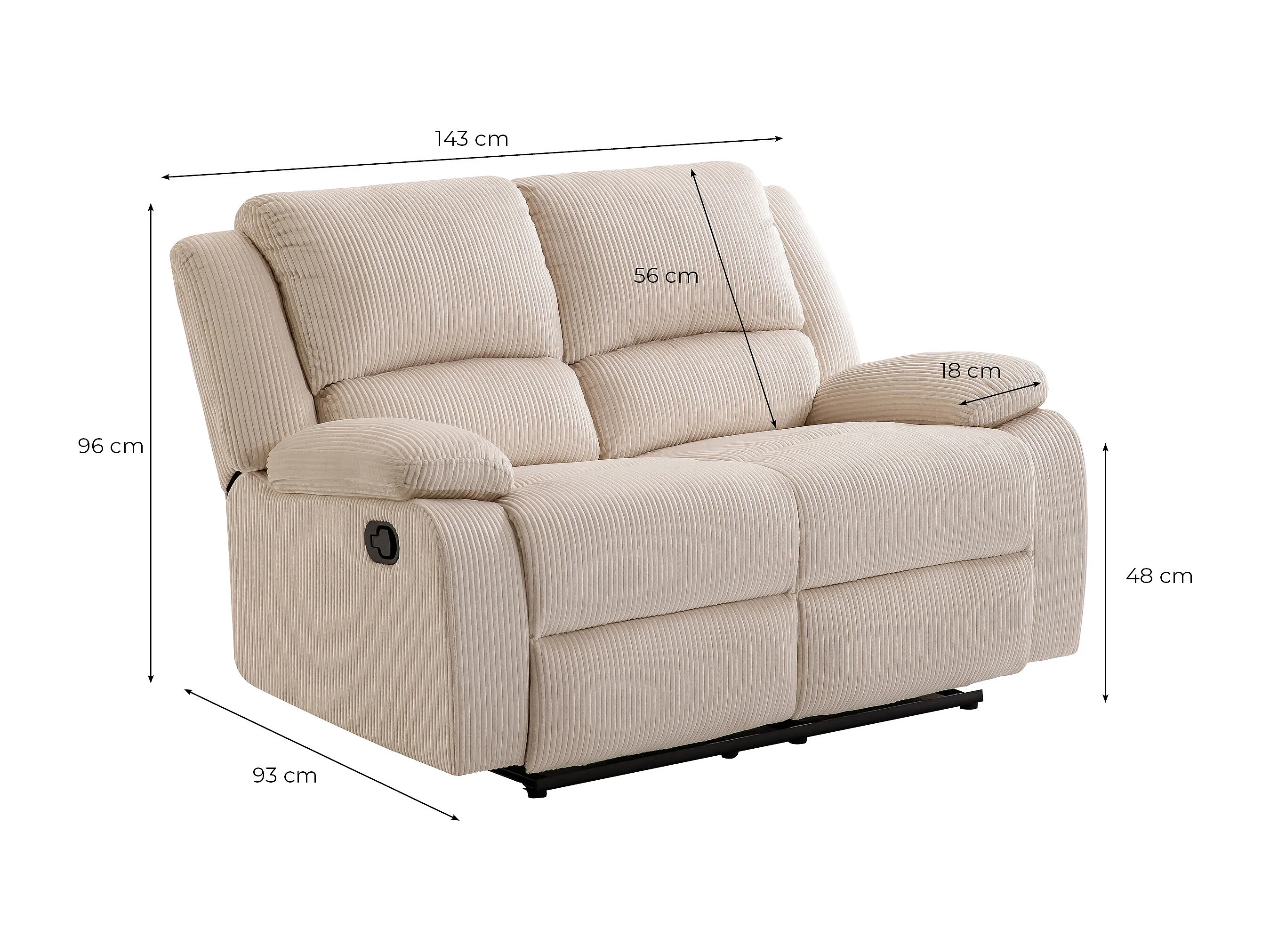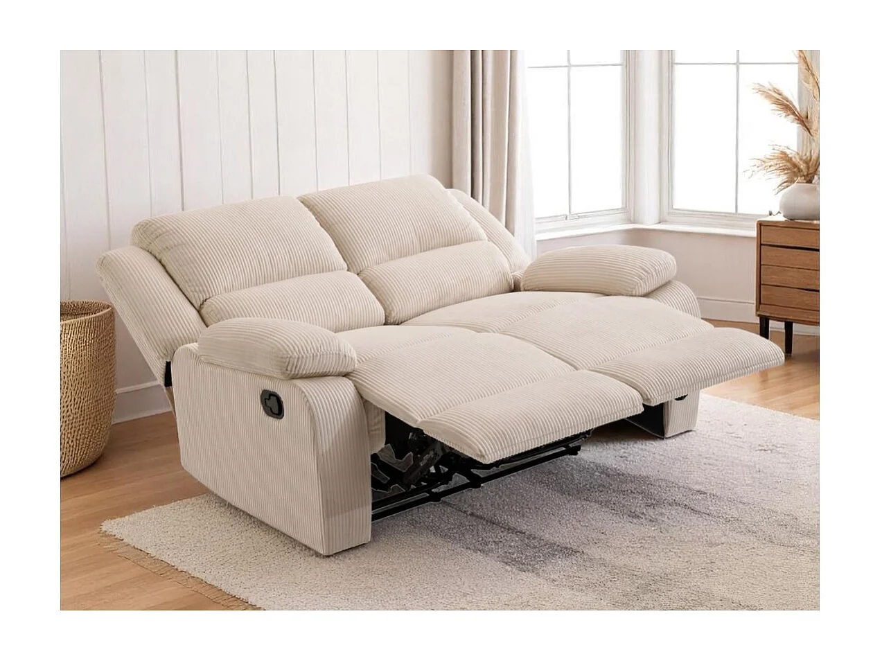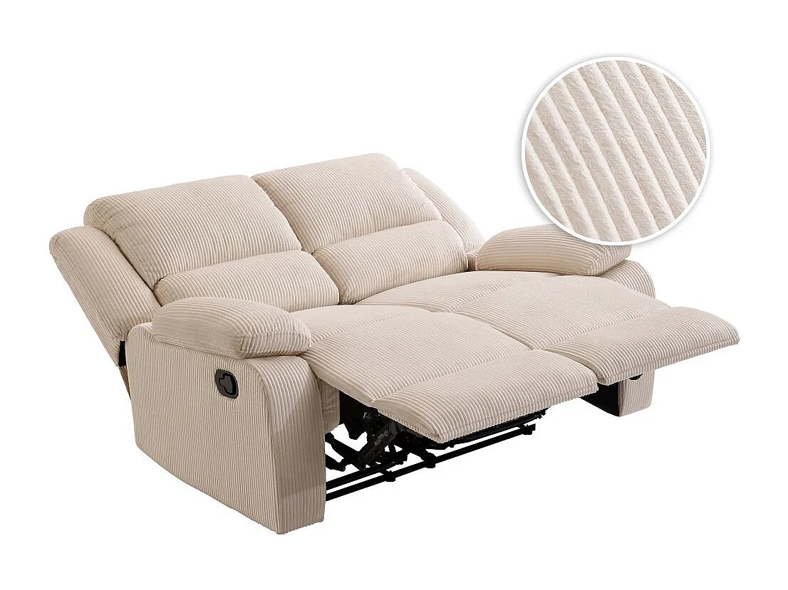 RELAXXO - Canapé de relaxation manuel 2 places LEO en velours côtelé - beige