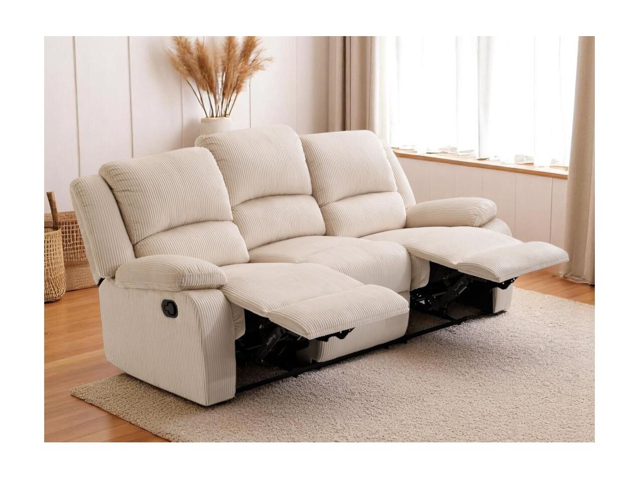 RELAXXO - Canapé de relaxation manuel 3 places LEO en velours côtelé - beige