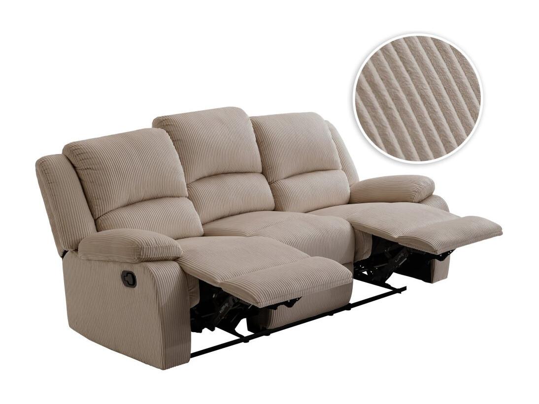 RELAXXO - Canapé de relaxation manuel 3 places LEO en velours côtelé - Taupe