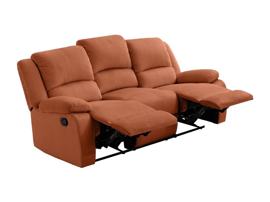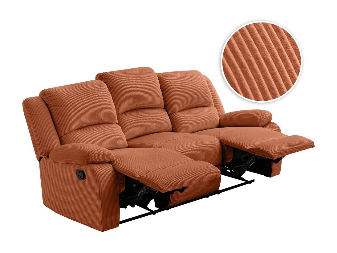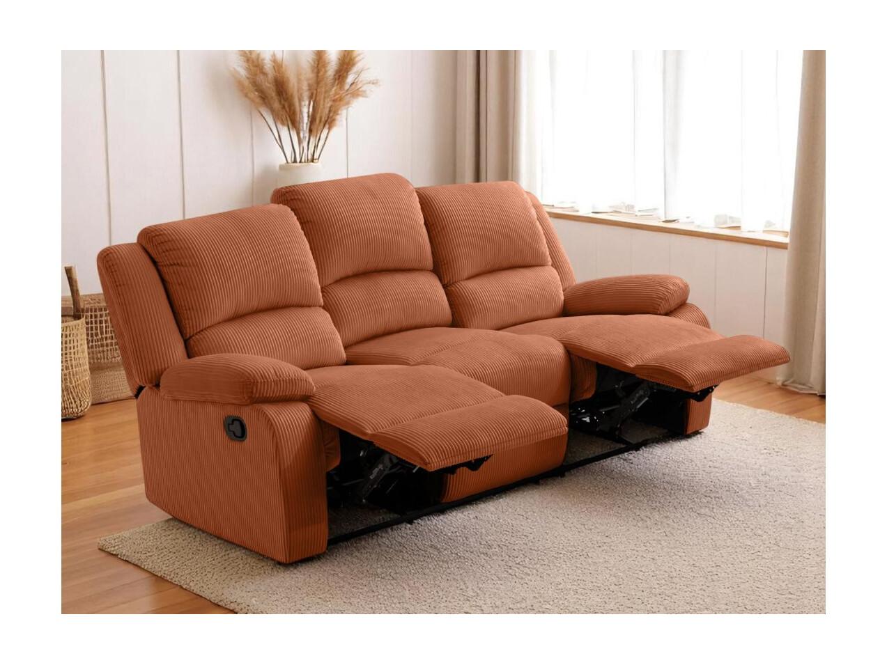 RELAXXO - Canapé de relaxation manuel 3 places LEO en velours côtelé - Terracotta