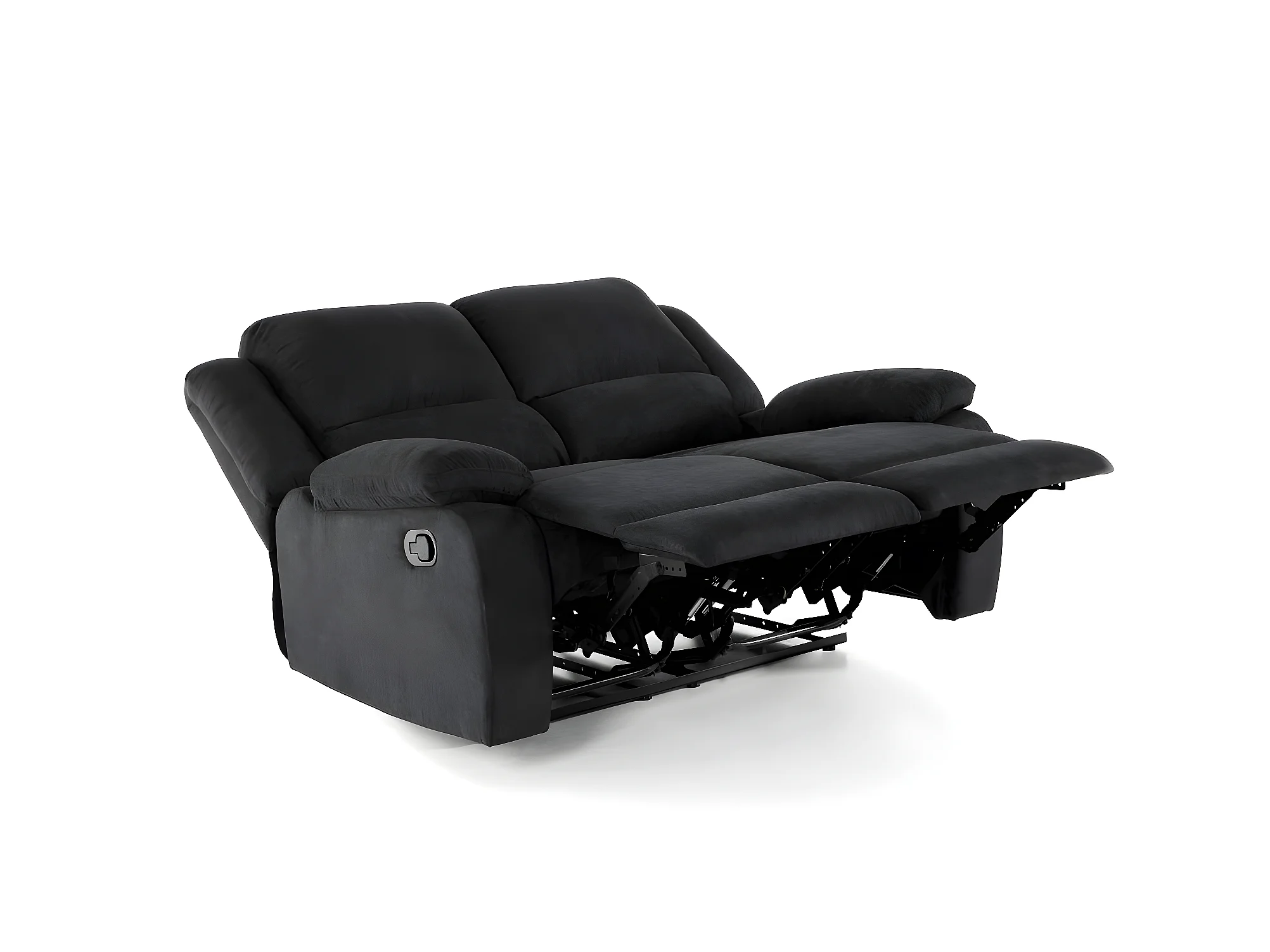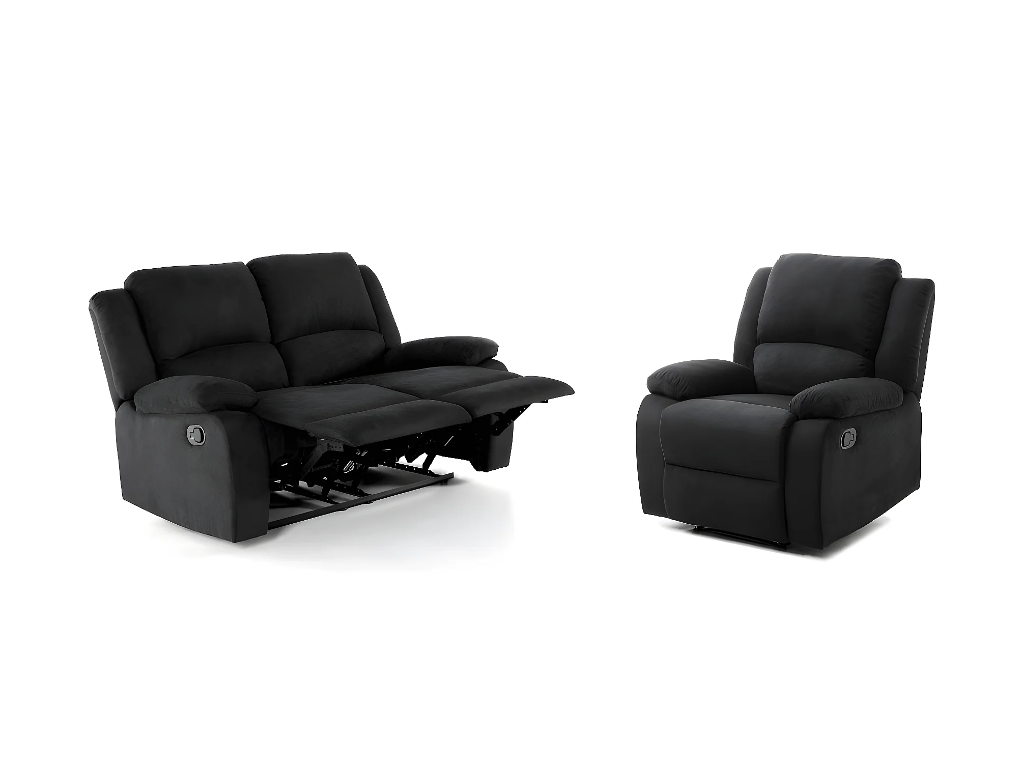 Ensemble canapé relax manuel Léo 2 places + fauteuil manuel en microfibre - Noir - Loungitude