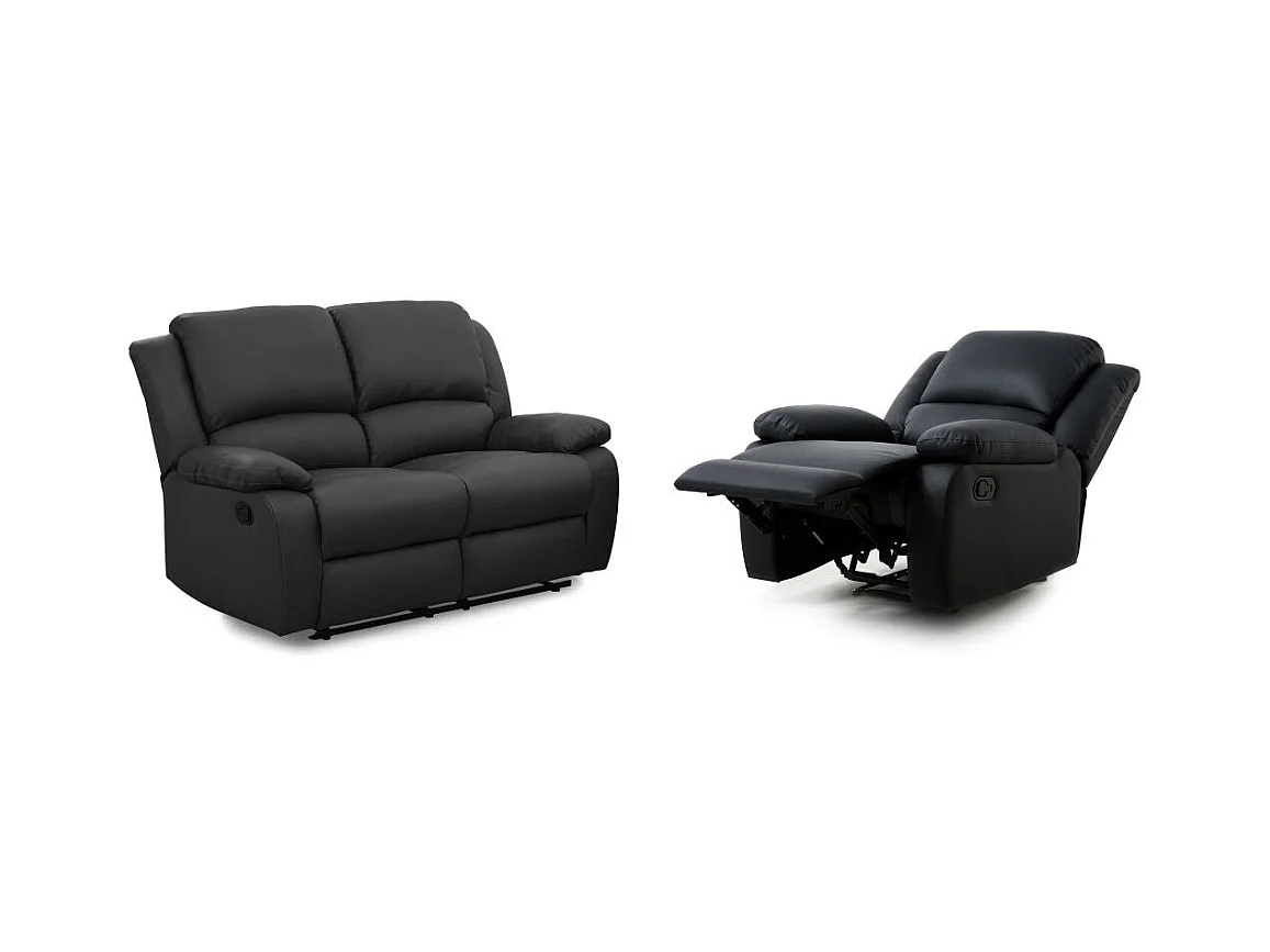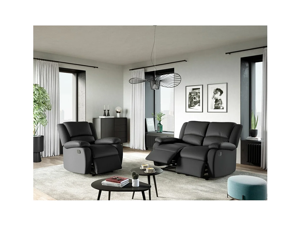 Ensemble canapé relax manuel Léo 2 places + fauteuil manuel en simili - Noir - Loungitude