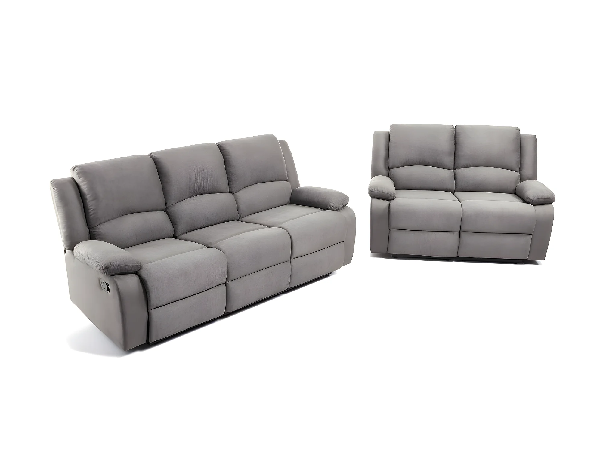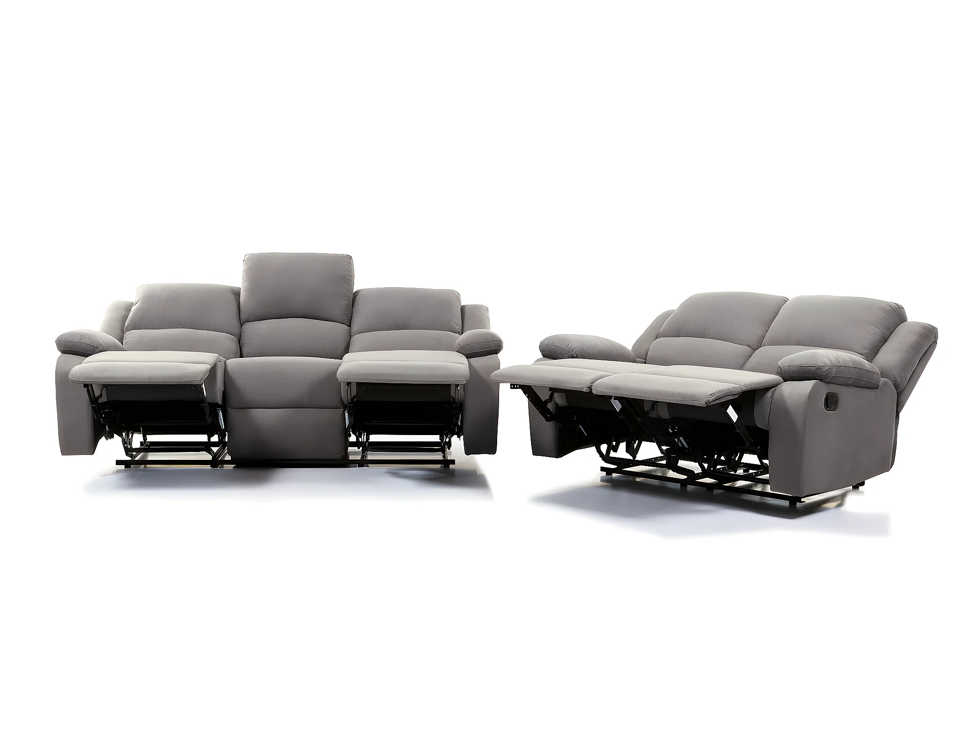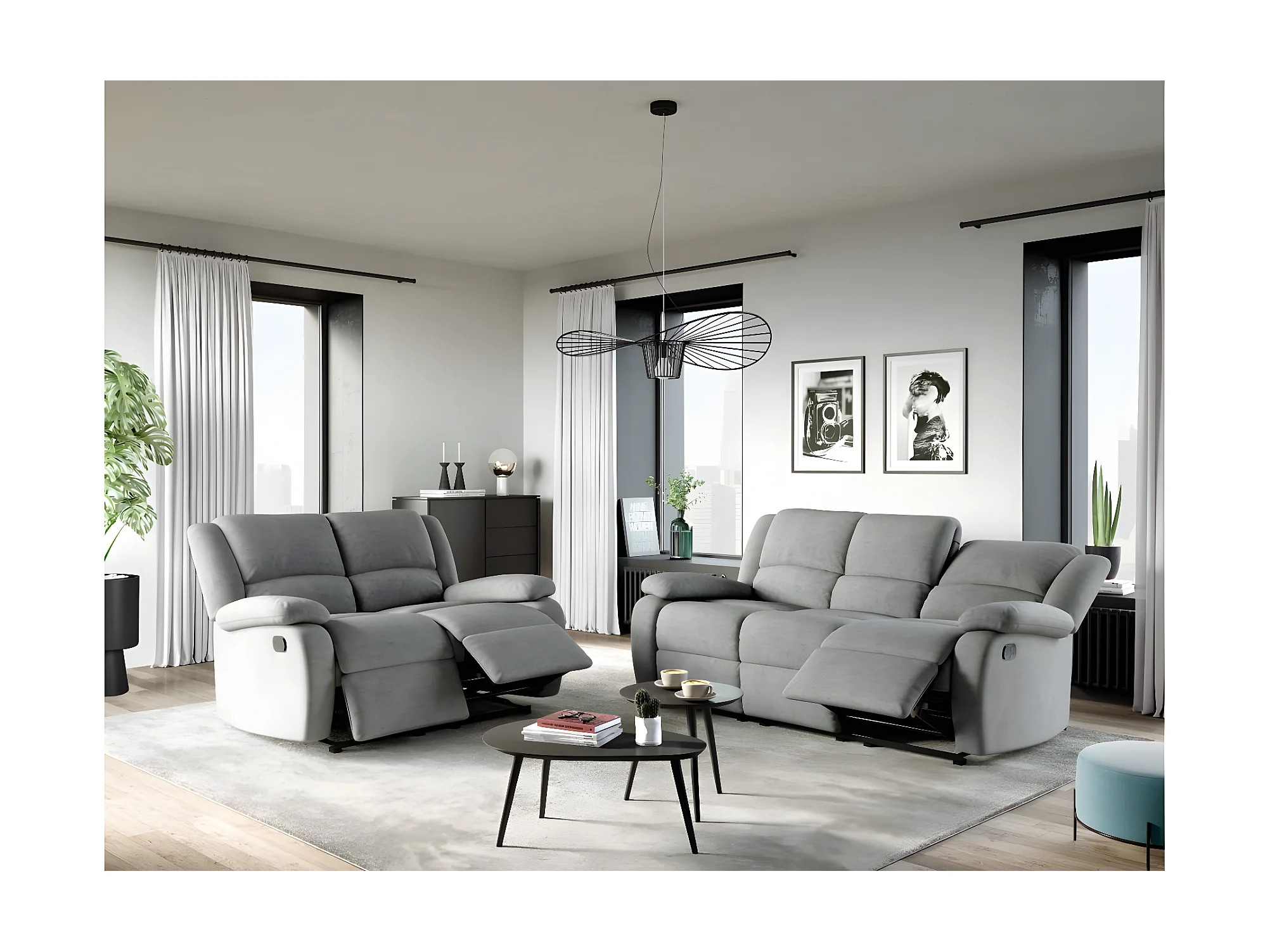 RELAXXO - Ensemble canapés relax manuels LEO 3 + 2 places en microfibre - Gris