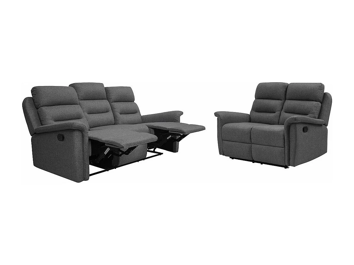 Ensemble canapés relax manuels Léon 3 + 2 places en tissu Gris anthracite - Loungitude