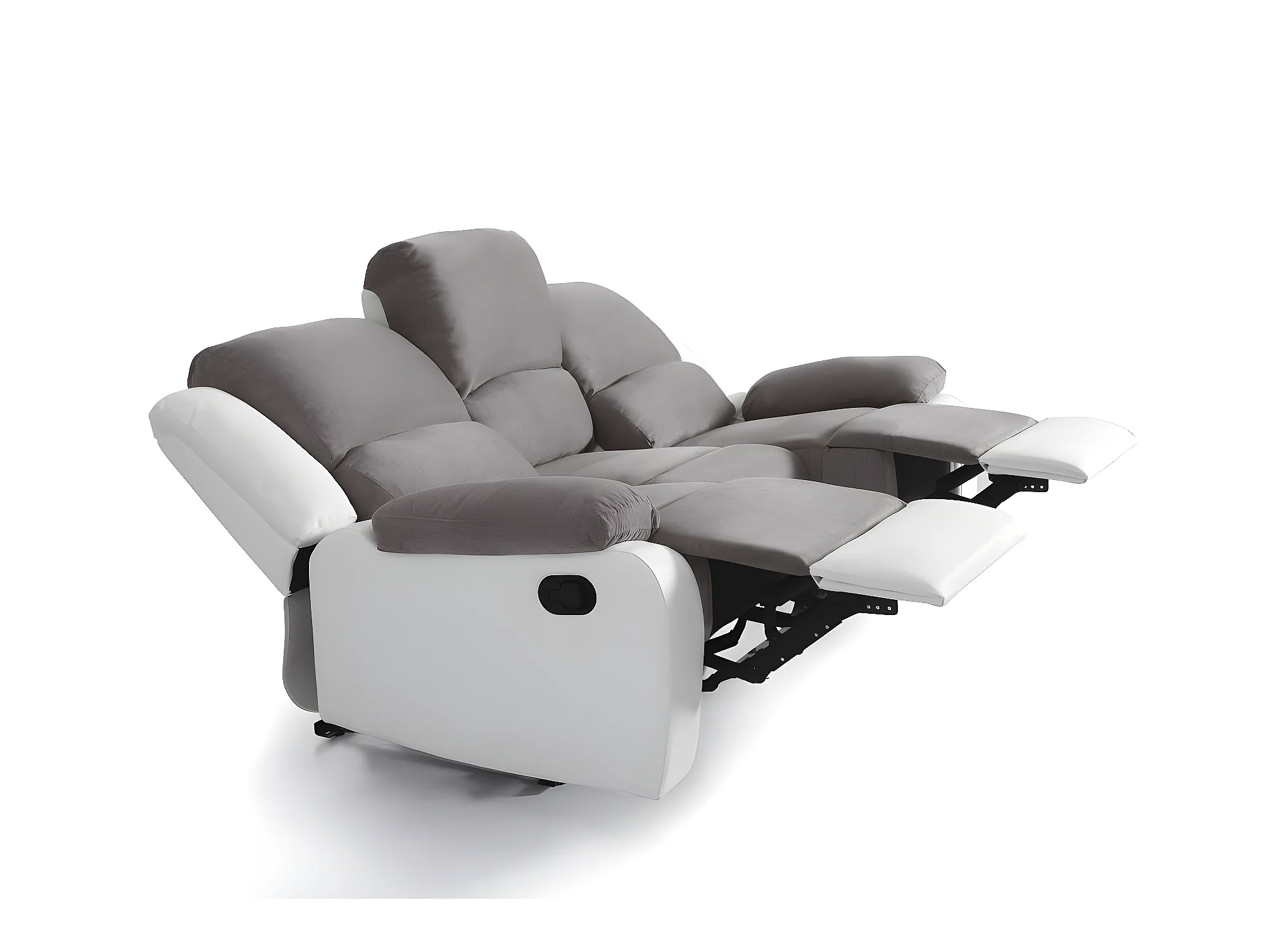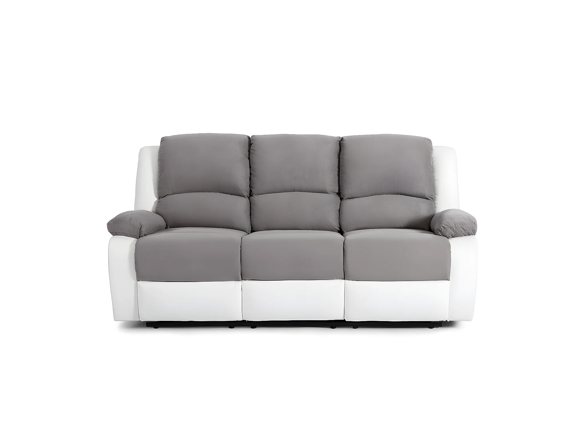 RELAXXO - Pack canapé relax manuel LEO 3 pl + fauteuil manuel en microfibre et simili - Gris/Blanc