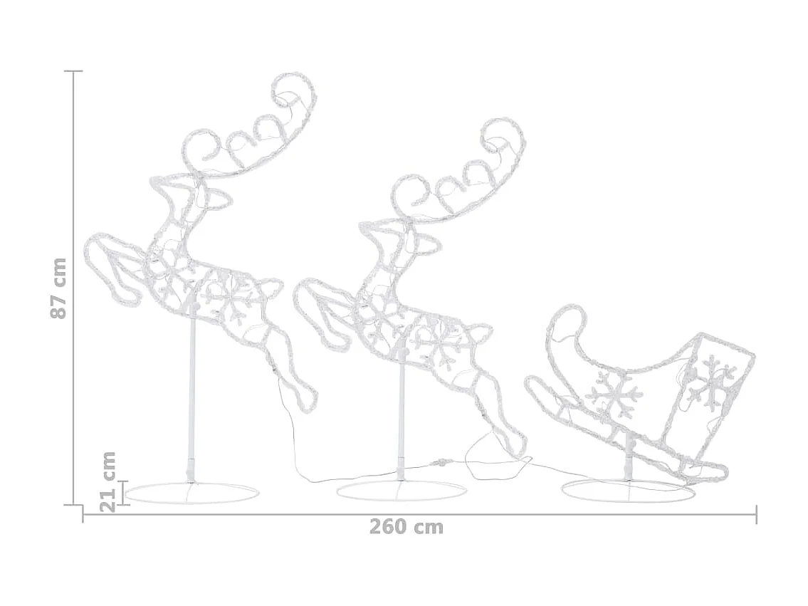 Décoration de Noël Rennes et traîneau 280x28x55 cm Acrylique
