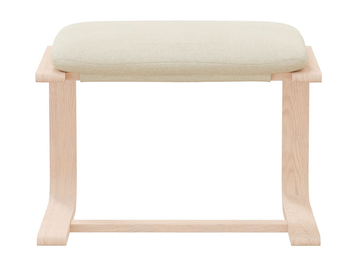 Tabouret repose-pied capitonné style classique - bois d'hévéa sculpté, patiné - revêtement aspect lin crème