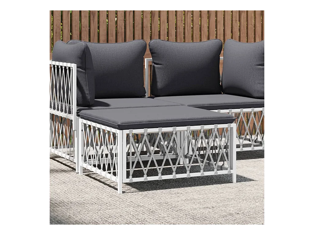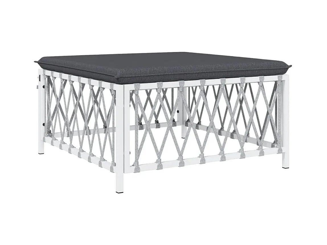 Repose-pied de jardin avec coussin blanc tissu tissé LQF72440