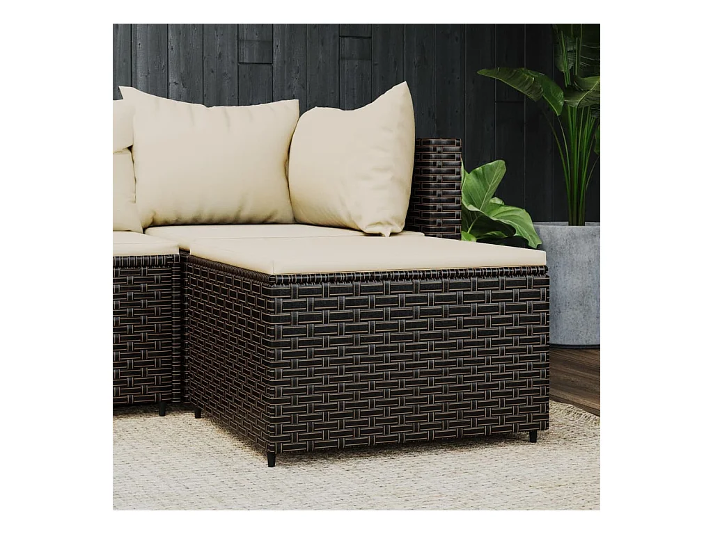 Repose-pied de jardin avec coussin marron résine tressée 2