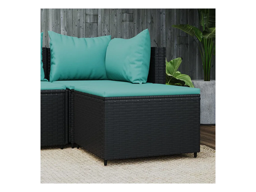Repose-pieds de jardin avec coussins 2 pcs noir résine tressée