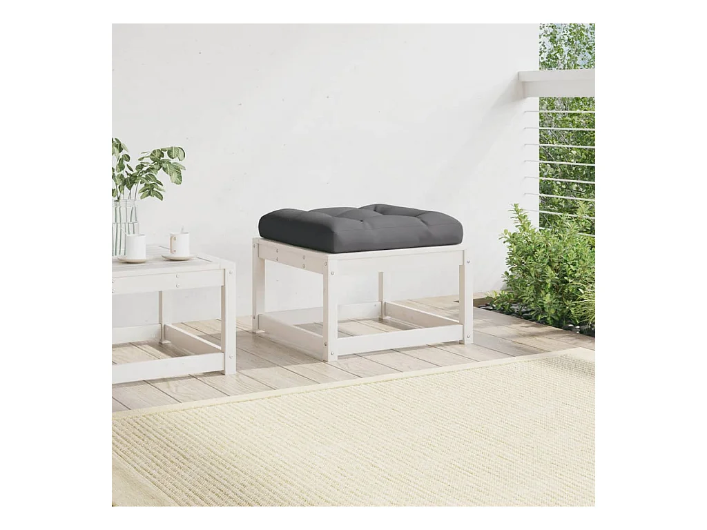 Koen Repose-pied de jardin avec coussin Blanc Bois de pin massif