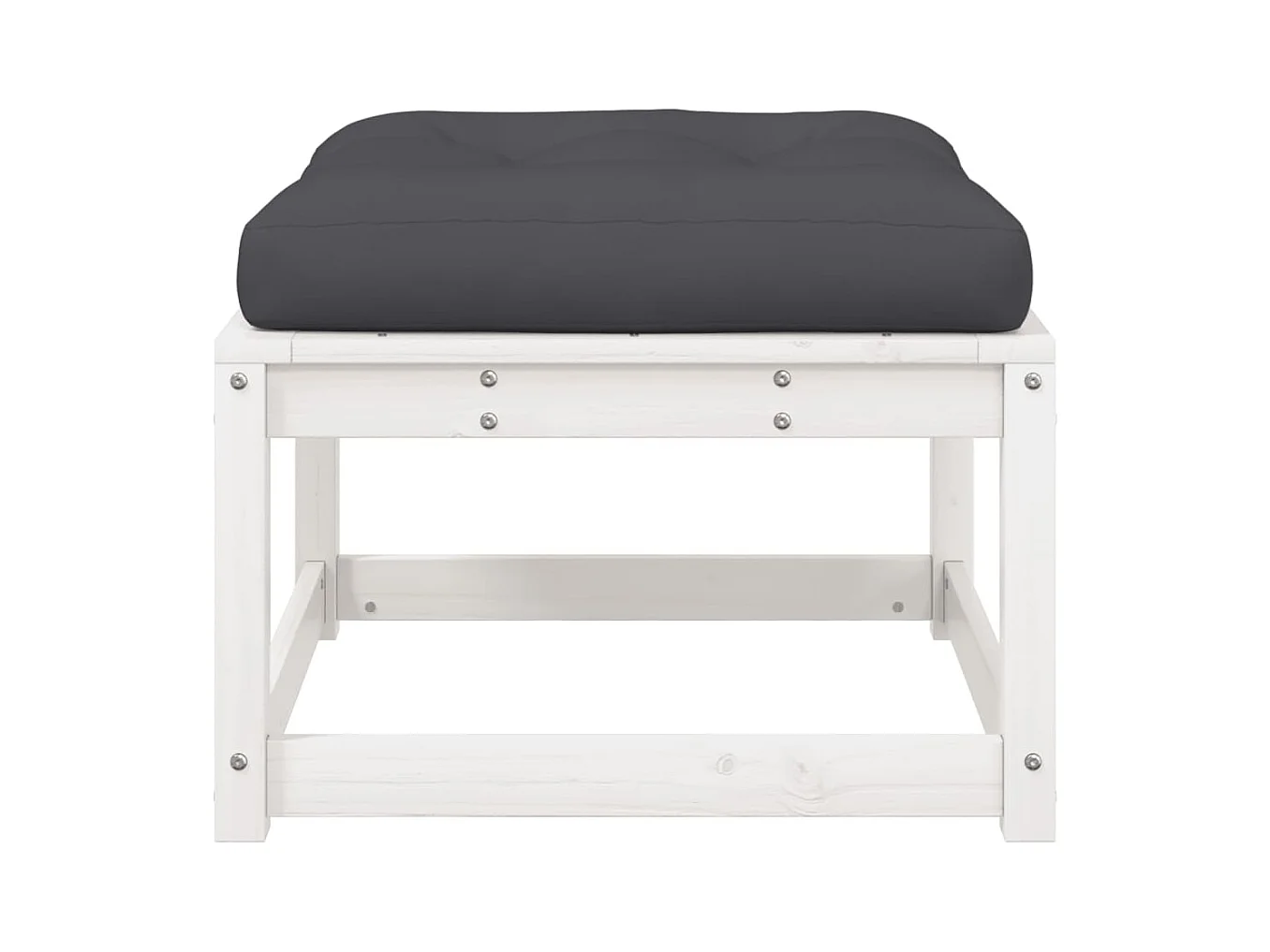 Repose-pied de jardin avec coussins blanc bois de pin massif
