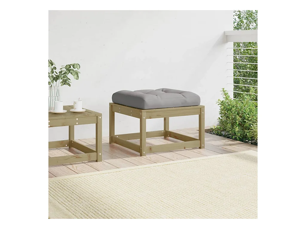 Repose-pied de jardin avec coussin bois de pin imprégné