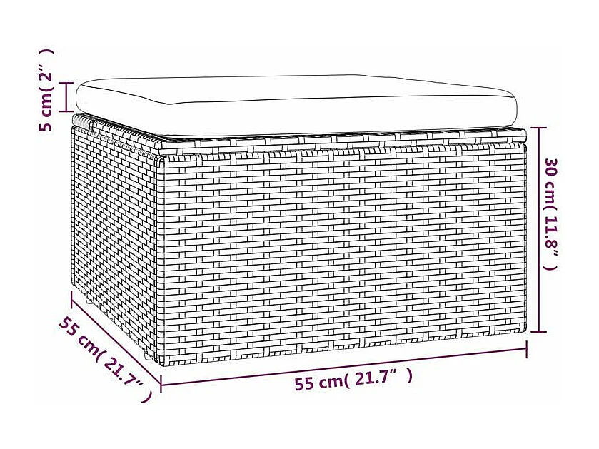 Repose-pied de jardin et coussin Gris 55x55x30 Résine tressée
