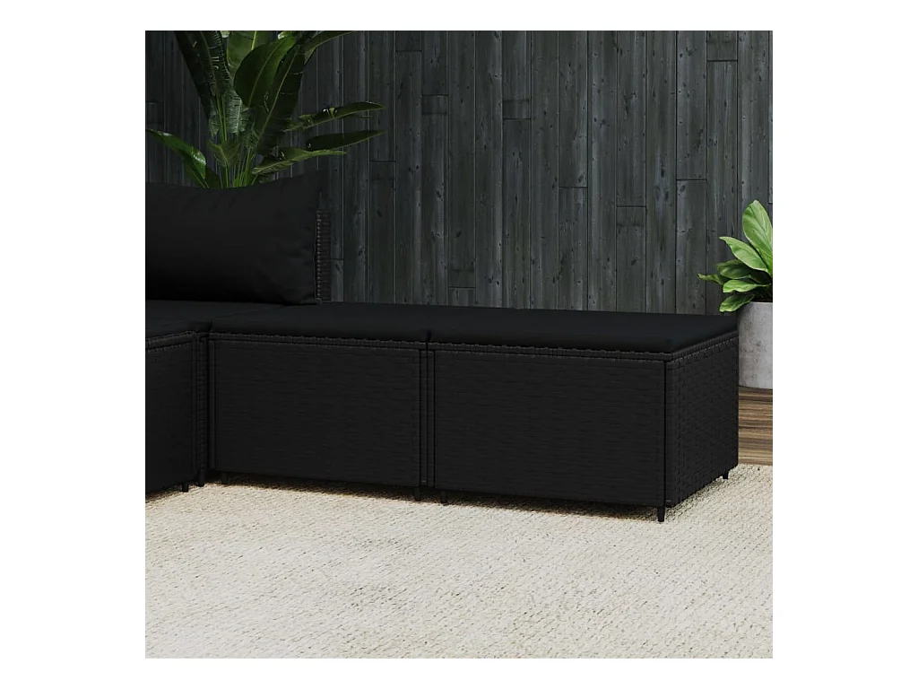 Repose-pieds de jardin avec coussins 2 pcs noir résine tressée