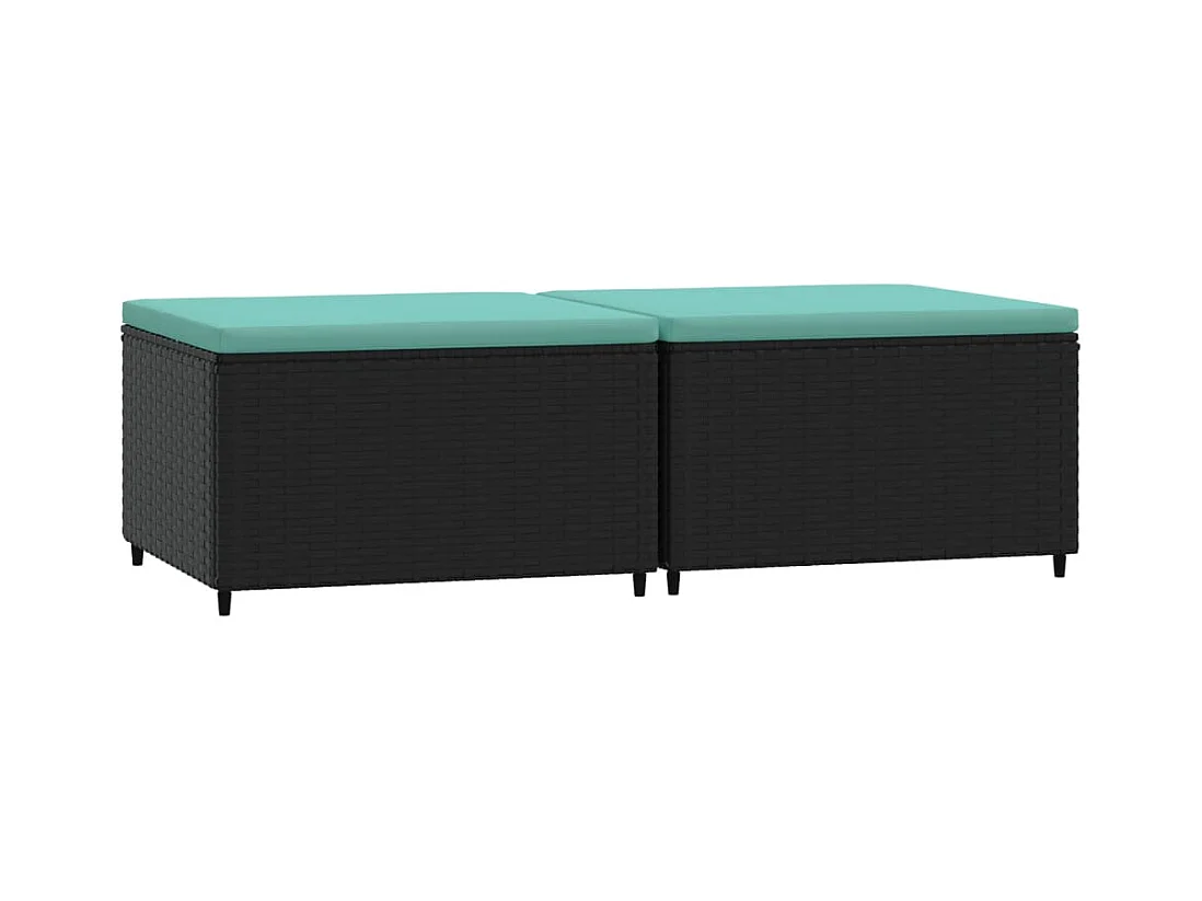 Repose-pieds de jardin avec coussins 2 pcs noir résine tressée