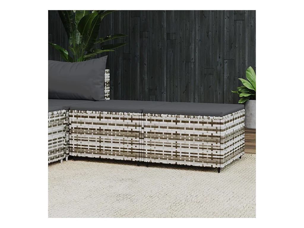 Repose-pied de jardin avec coussin Gris Résine tressée