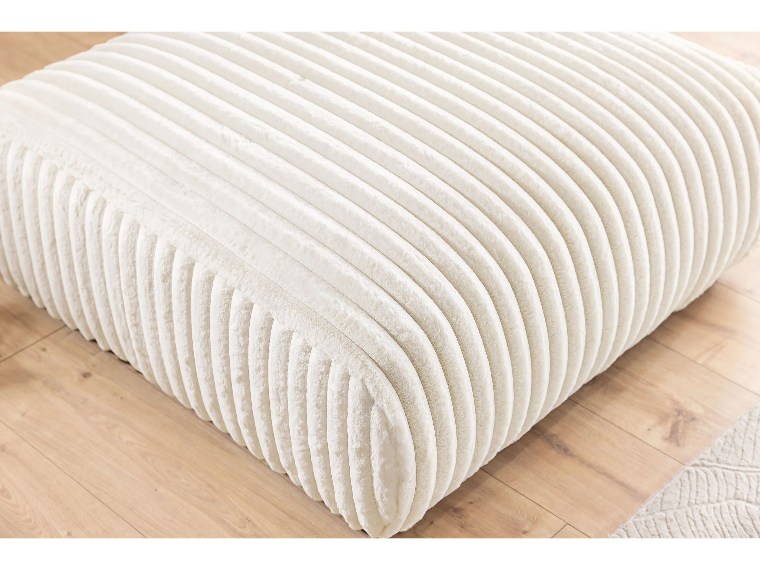 Repose-pieds en velours côtelé pelucheux beige clair, offrant un agréable confort d’assise MOLLIS