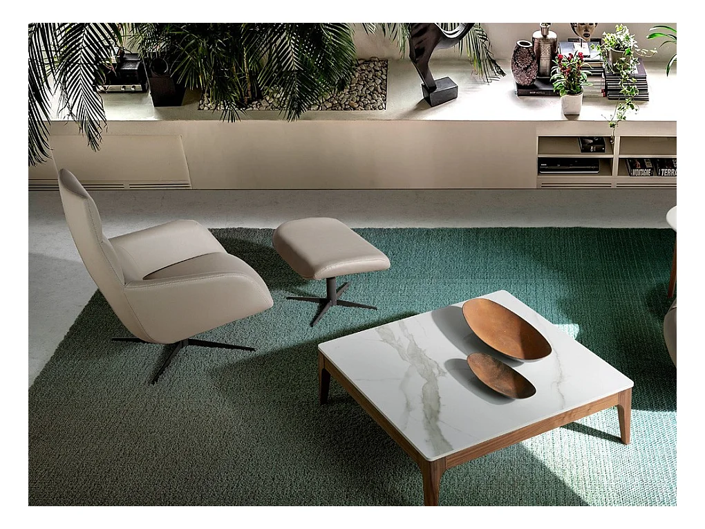 Repose-pieds pivotant similicuir et pieds acier noir Alavy-Couleur Aqua 61 Bleu clair