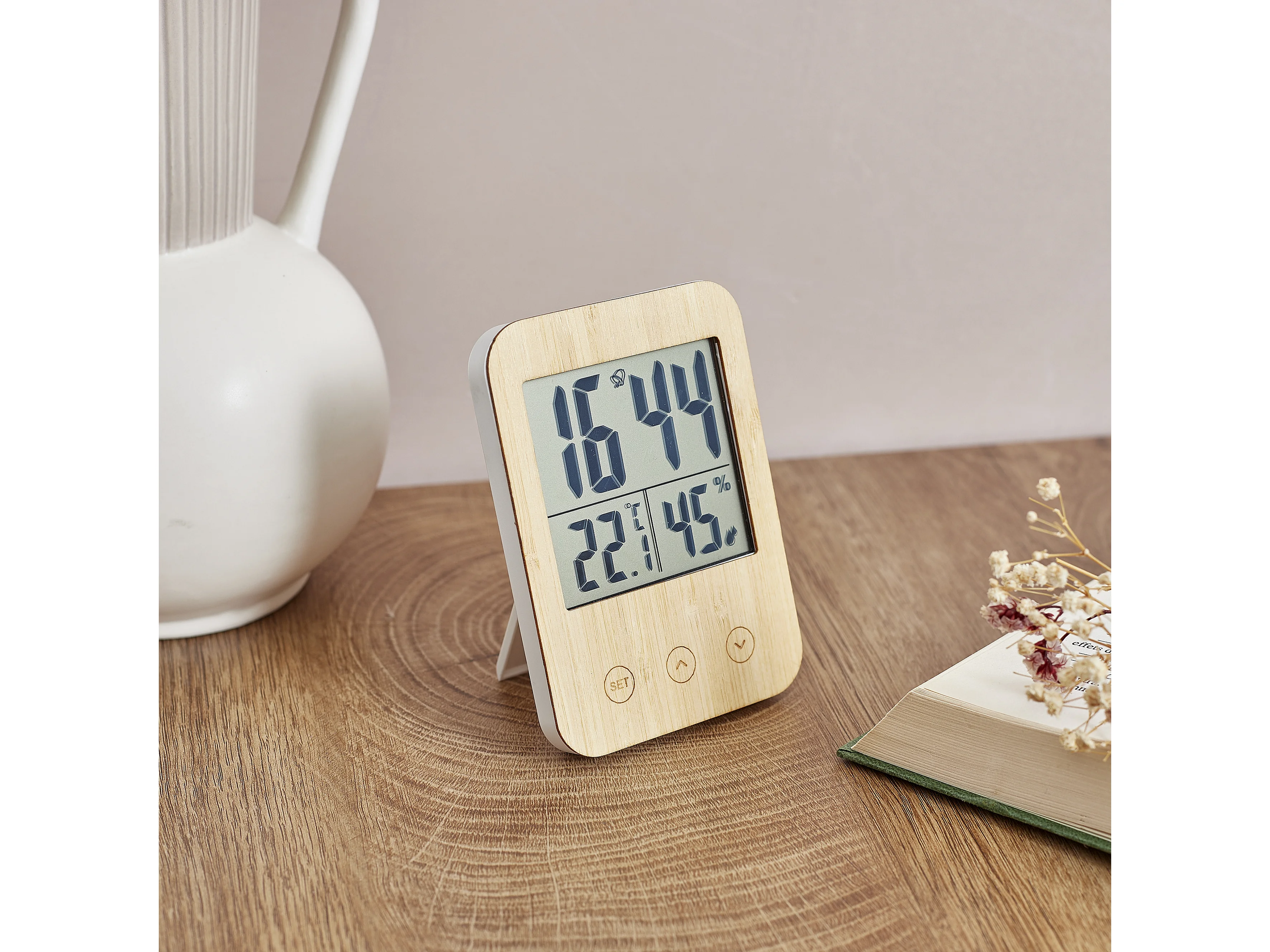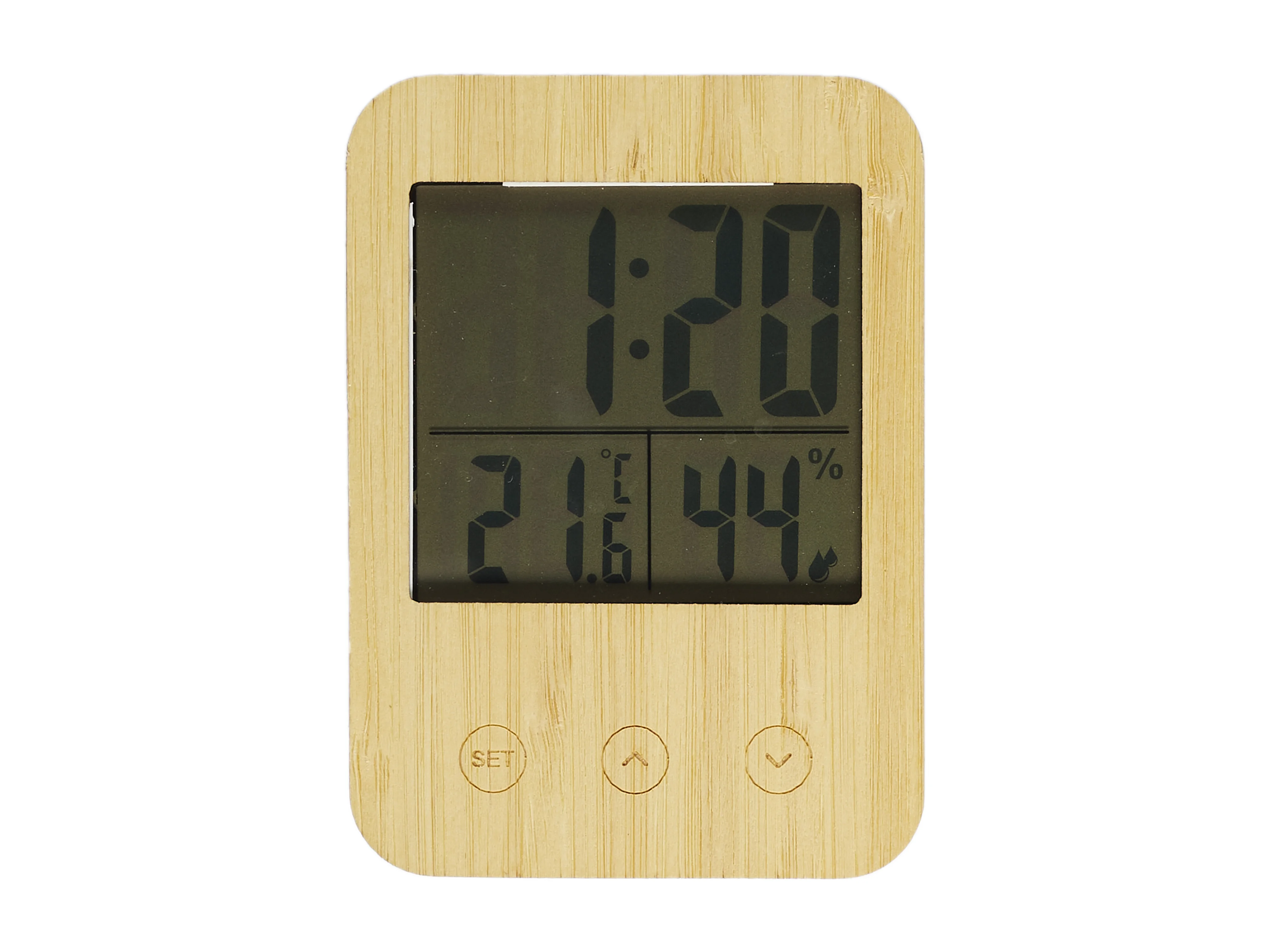 Réveil station météo façade en bois de bambou