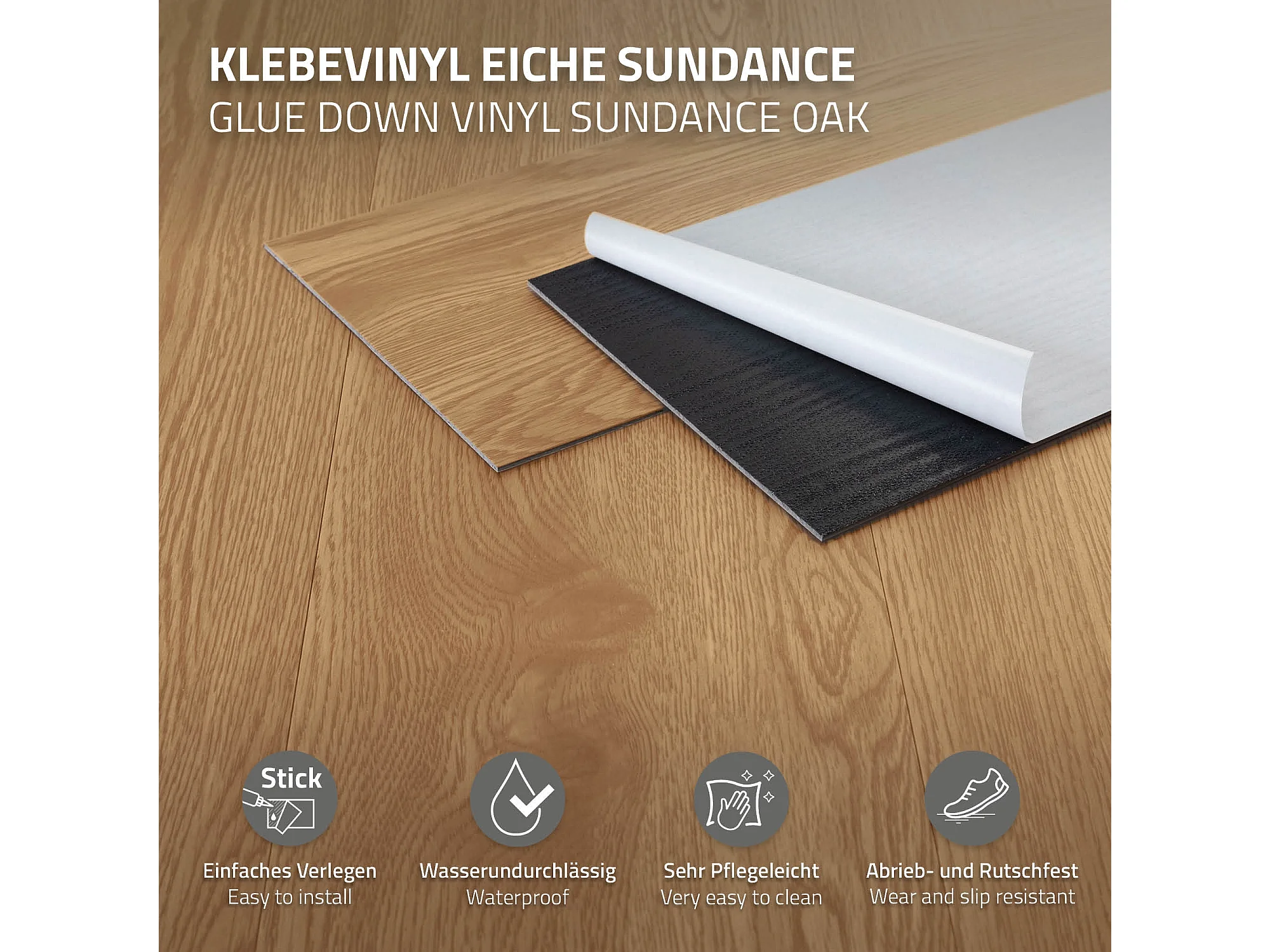 Revêtement de sol autocollant en PVC vinyle 4,46m²/32 planches 91,5cm x 15,3cm marron aspect chêne sundance antidérapant résistant à l'eau l'abrasion