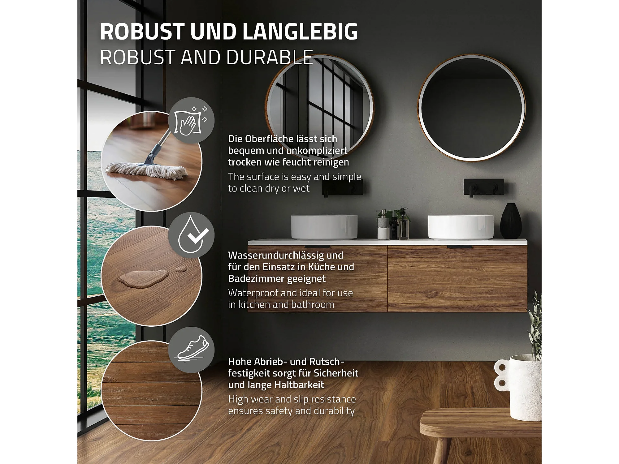 Revêtement de sol clipsable en vinyle 122cm x 18cm x 4,2mm 6,16m²/28 planches marron chêne aspect bois imitation parquet pvc étanche classe charge 34